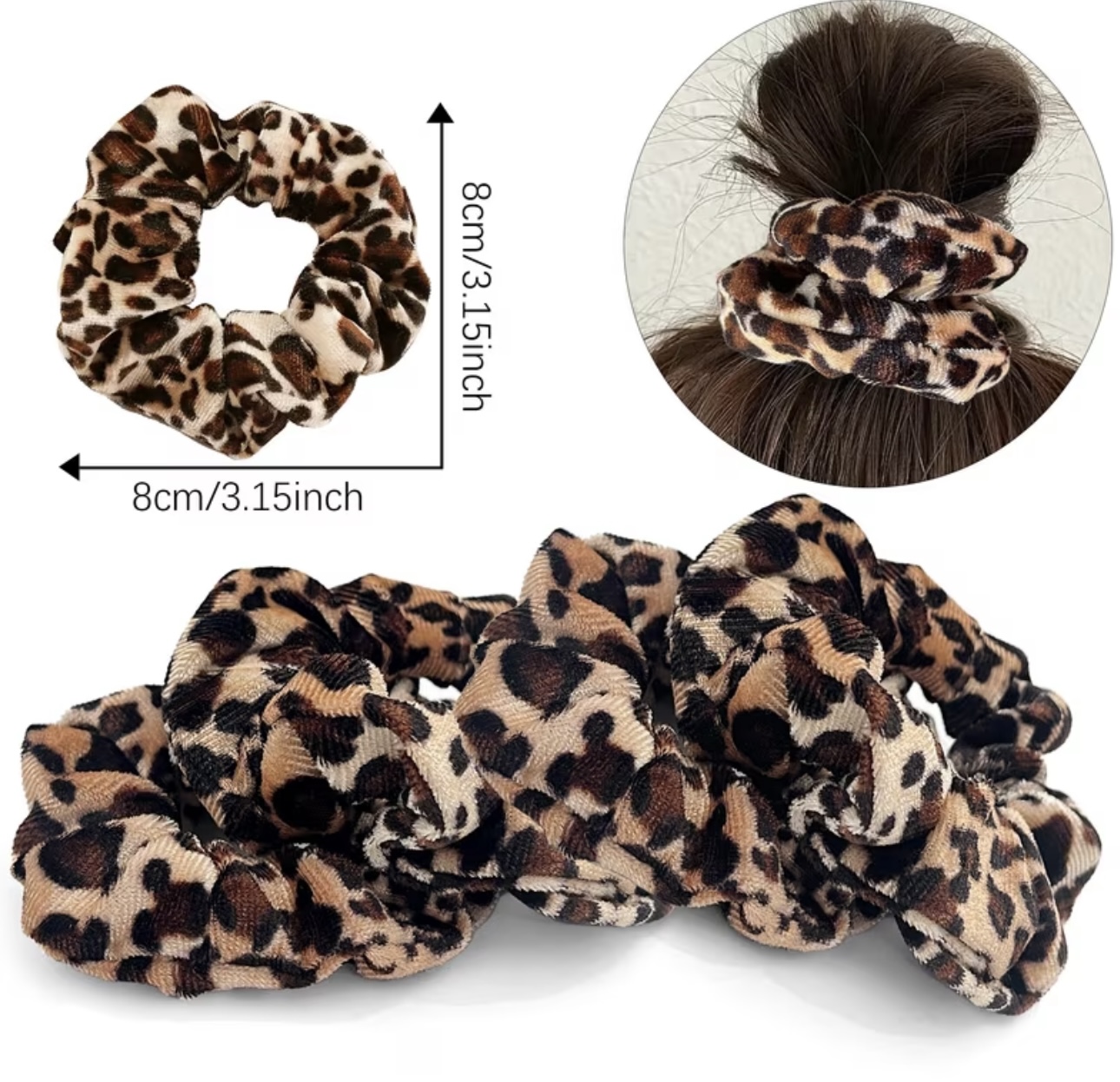 [Female Hair Accessories] 5pcs Luxurious Leopard Print Velvet Hair Scrunchies | Soft Elastic Hair Bands, Ponytail Holders for Women, Comfortable & Versatile