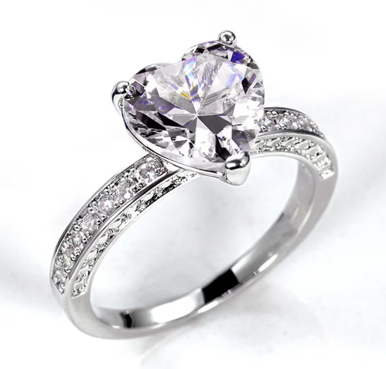 Women'S Elegant Heart-Shaped Cubic Synthetic Zirconia Ring - Luxury Wedding with AAA Stone, -Alternative Engagement Jewelry, Durable & Affordable, Secure Prong Setting for Everyday & Special Occasions, Year-Round Wear.