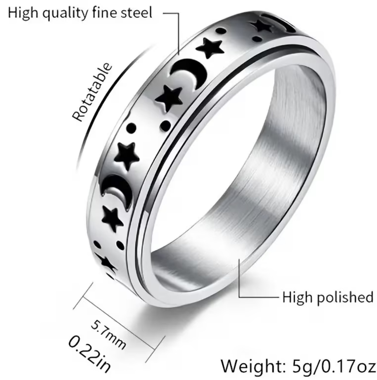 Moon Star Pattern 304 Stainless Steel Rotating Ring