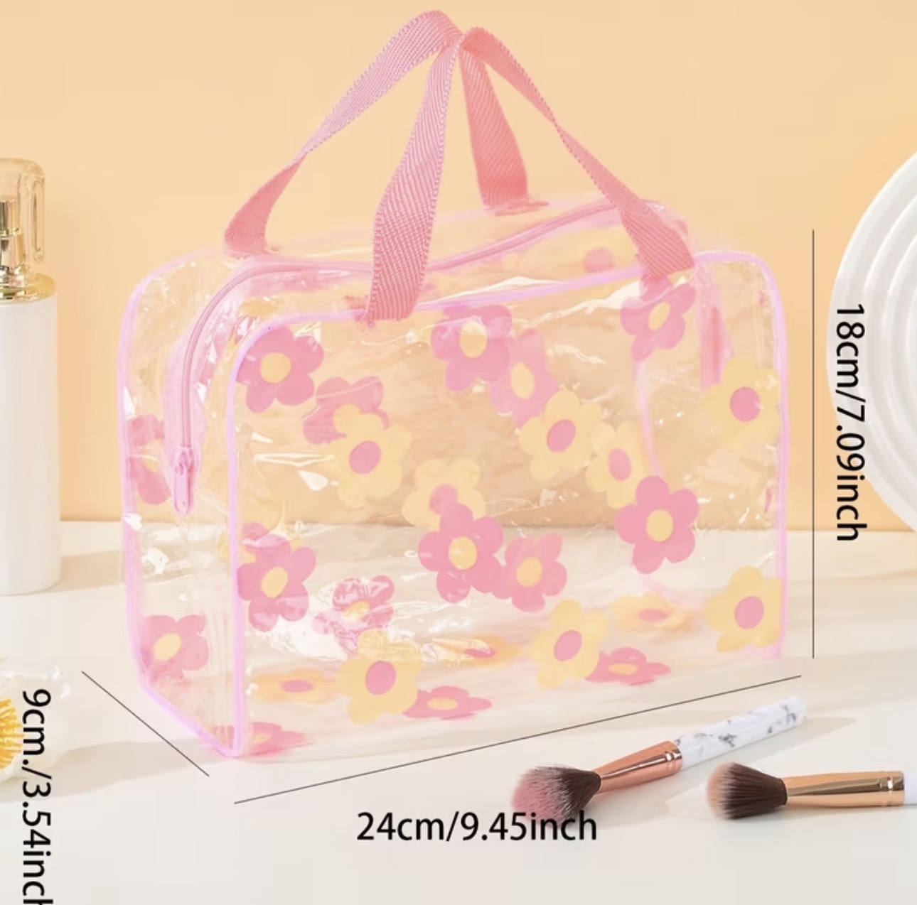 1pc Stylish Floral Transparent Cosmetic Bag