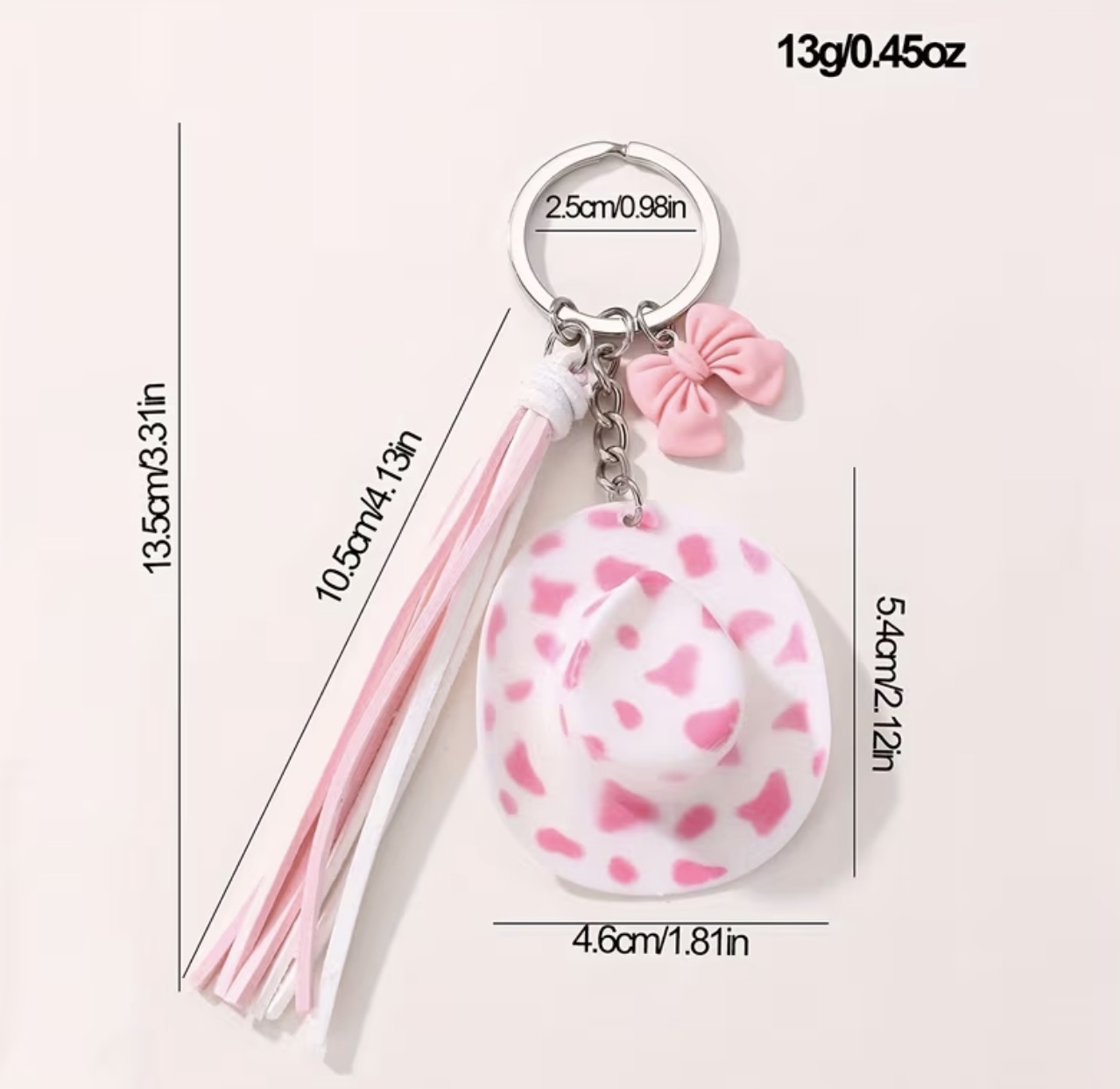 1pc Western Cowboy Keychain Suitable for Women & - Pink Cow Hat with Cow Hat & Round Key, Boho Bag Accessory for Shoulder Crossbody Handbags, for Teenage, College Students, Teachers, Festival Gifts