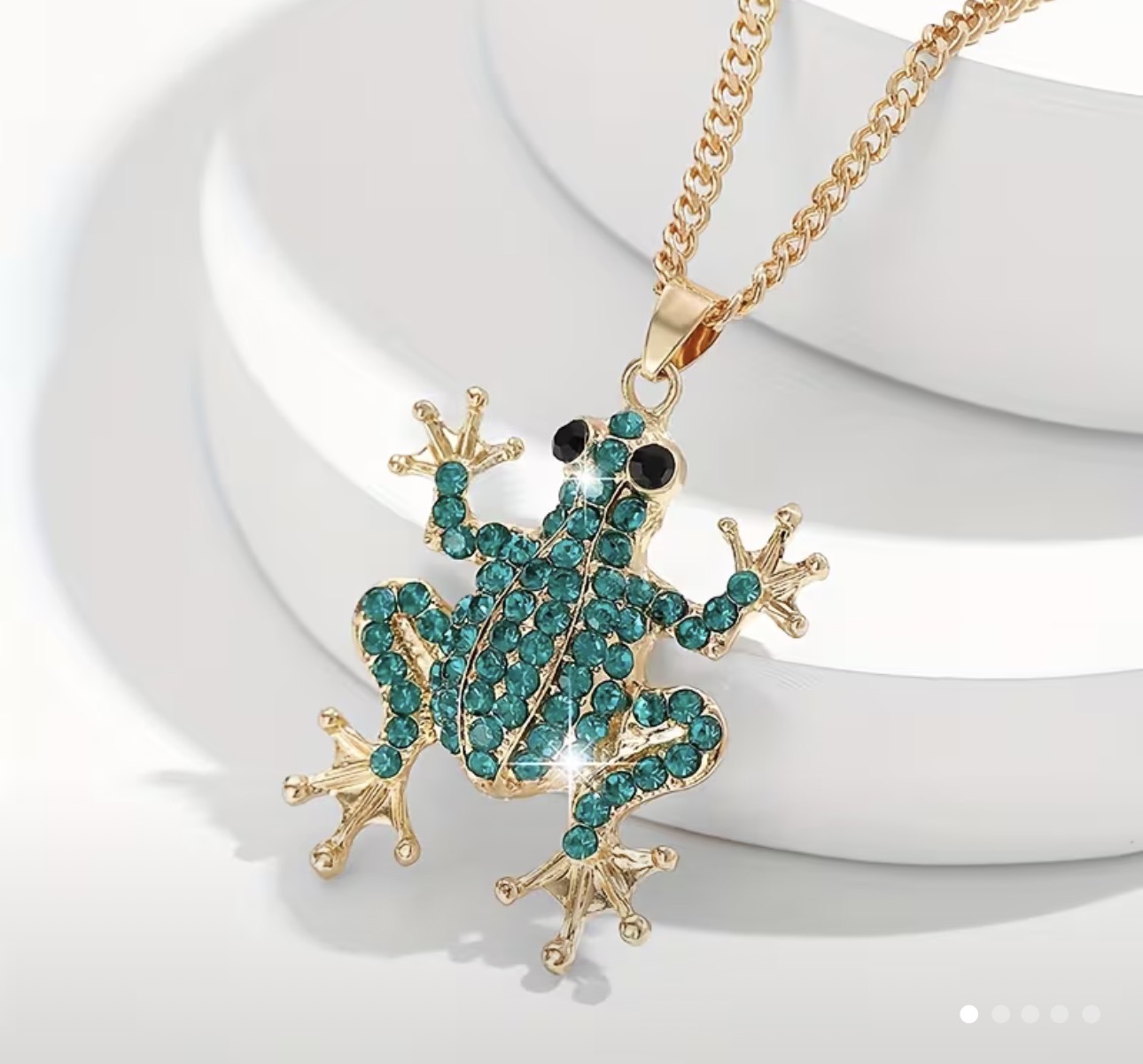 A Stylish And Glamorous Frog-Shaped Pendant Necklace Adorned with Rhinestones, Perfect for Women to Wear at Daily Parties Or As a Gift