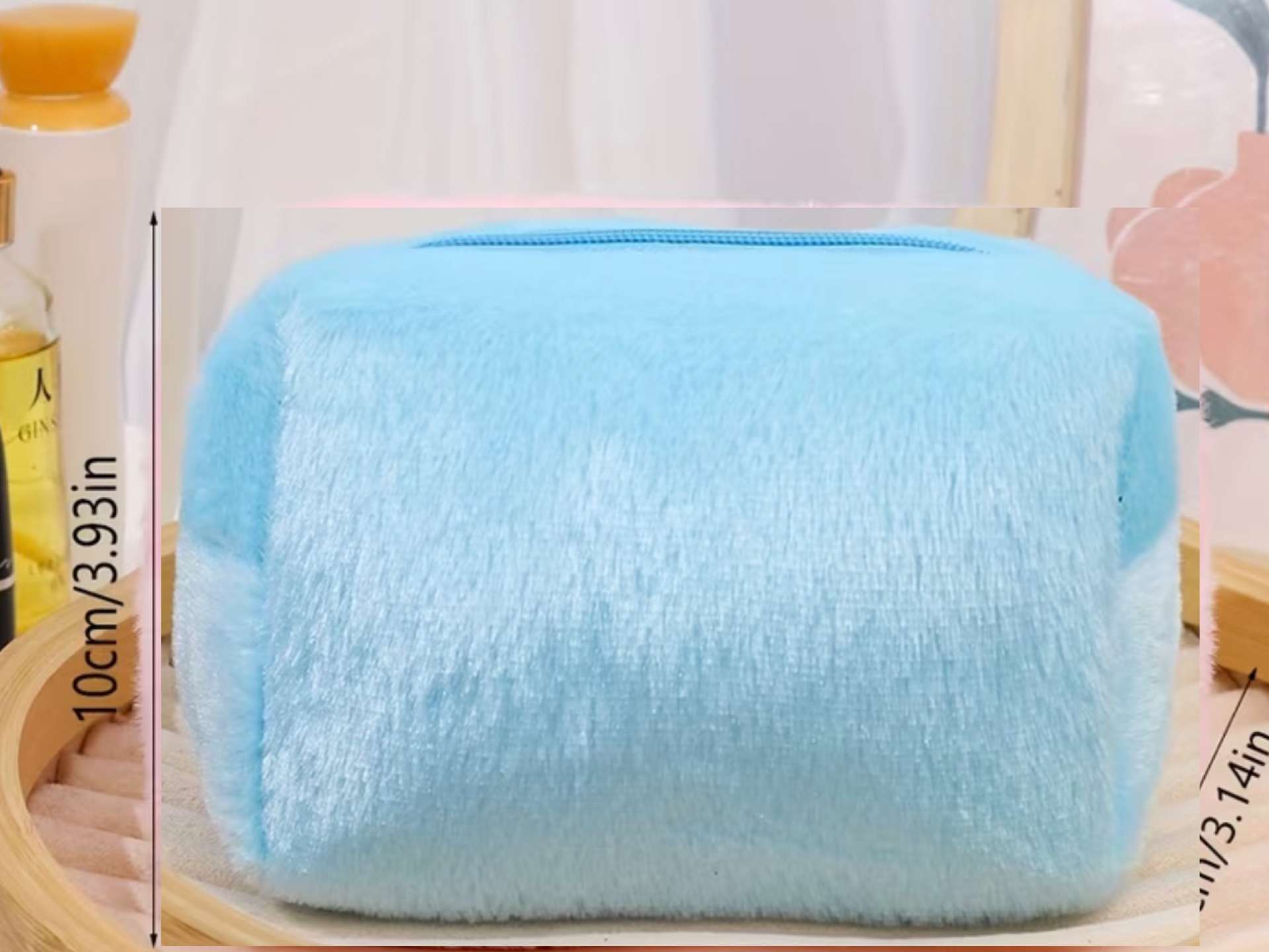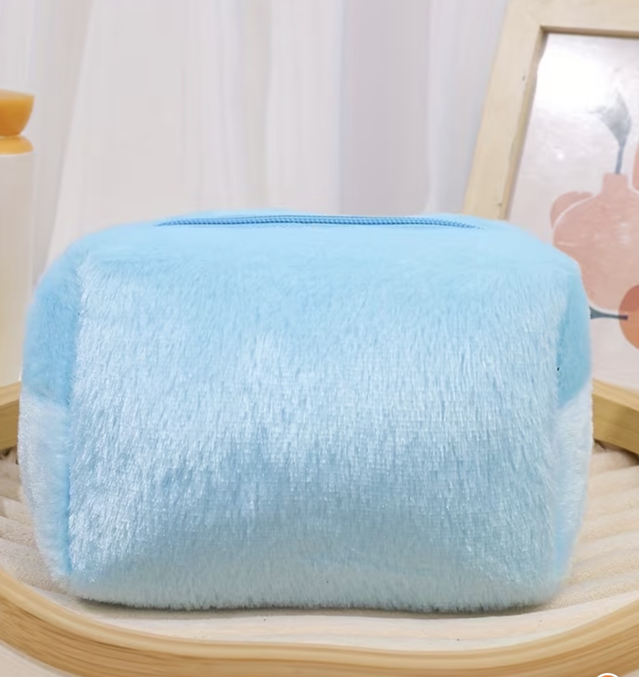 1pc Stylish Plush Cosmetic Bag ~ Blue