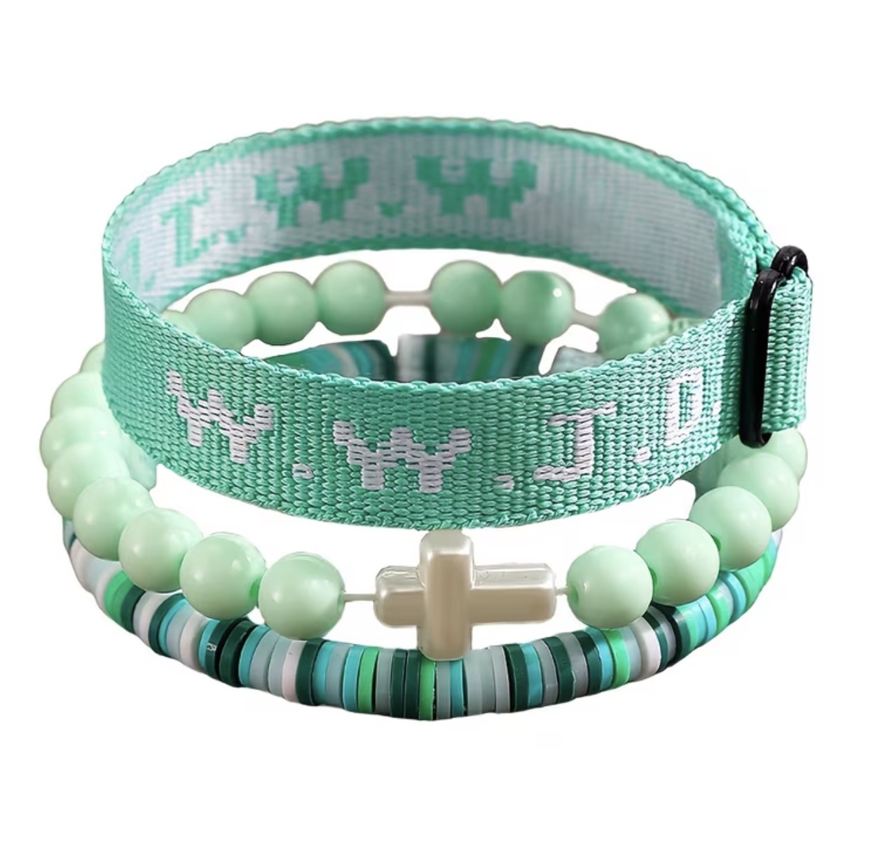 3pcs Fashion Minimalist Letter "WWJD" Polymer Clay Beaded Cross Pendant Bracelet Set for Women's Daily Wear and Vacation