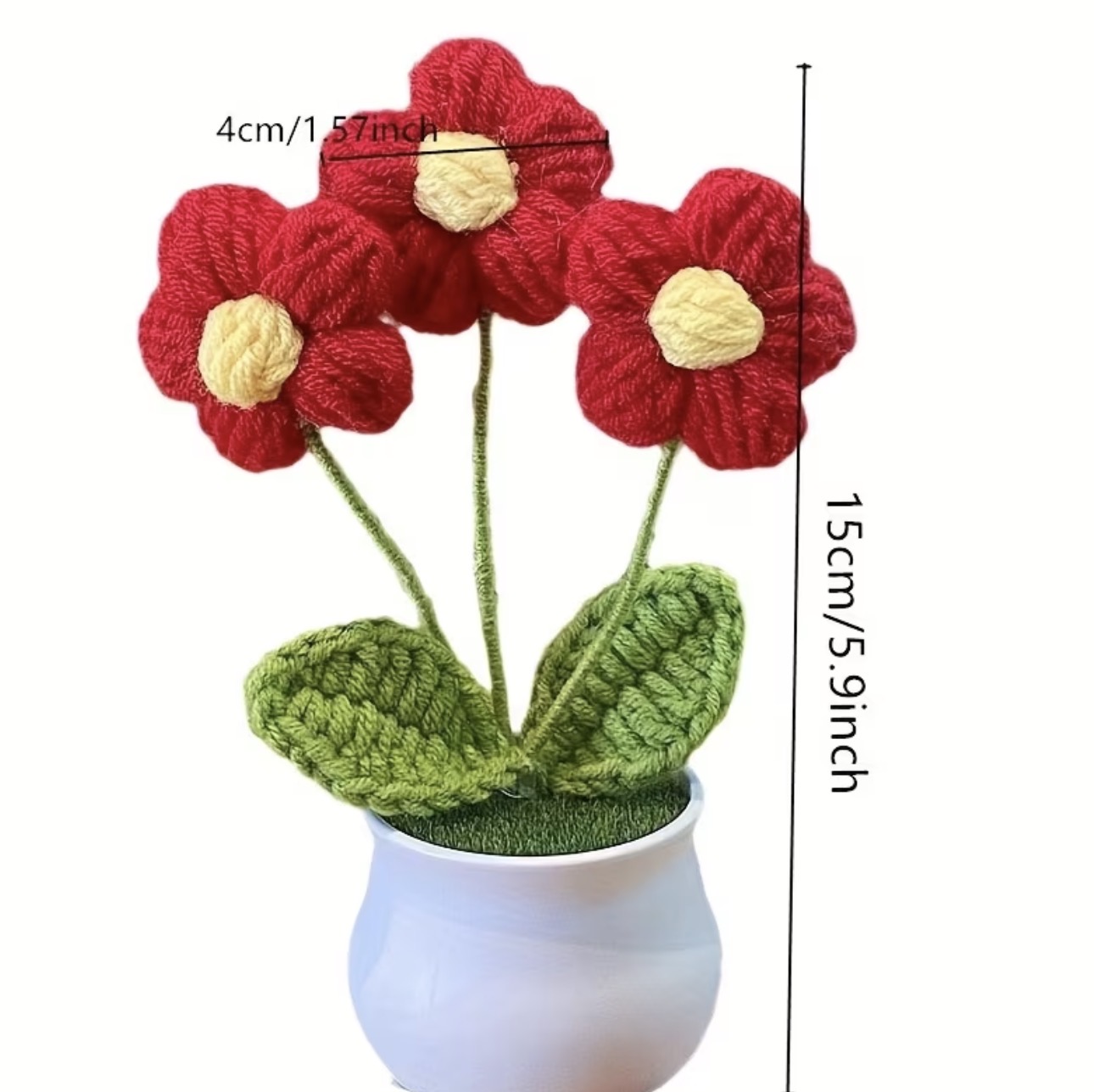 1pc Hand-Knitted Flower Pot with Artificial , Knitted Puff Flower, Home Decoration, Ornament, Birthday or Graduation Gift