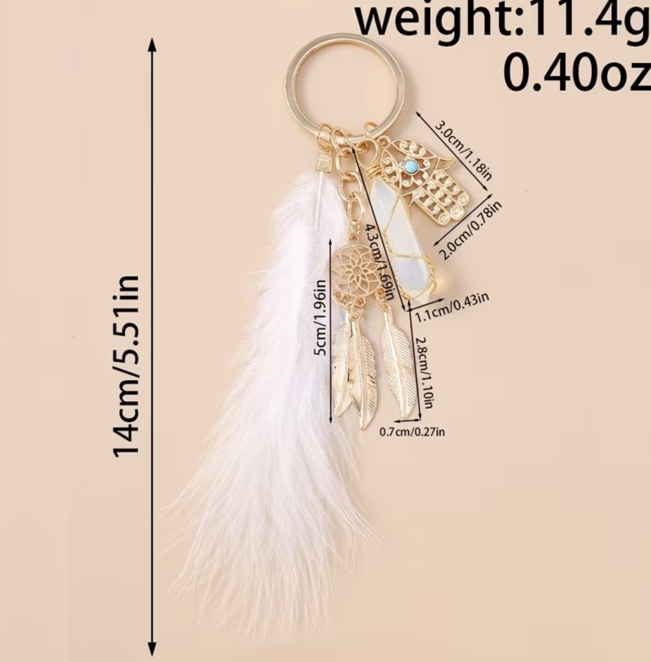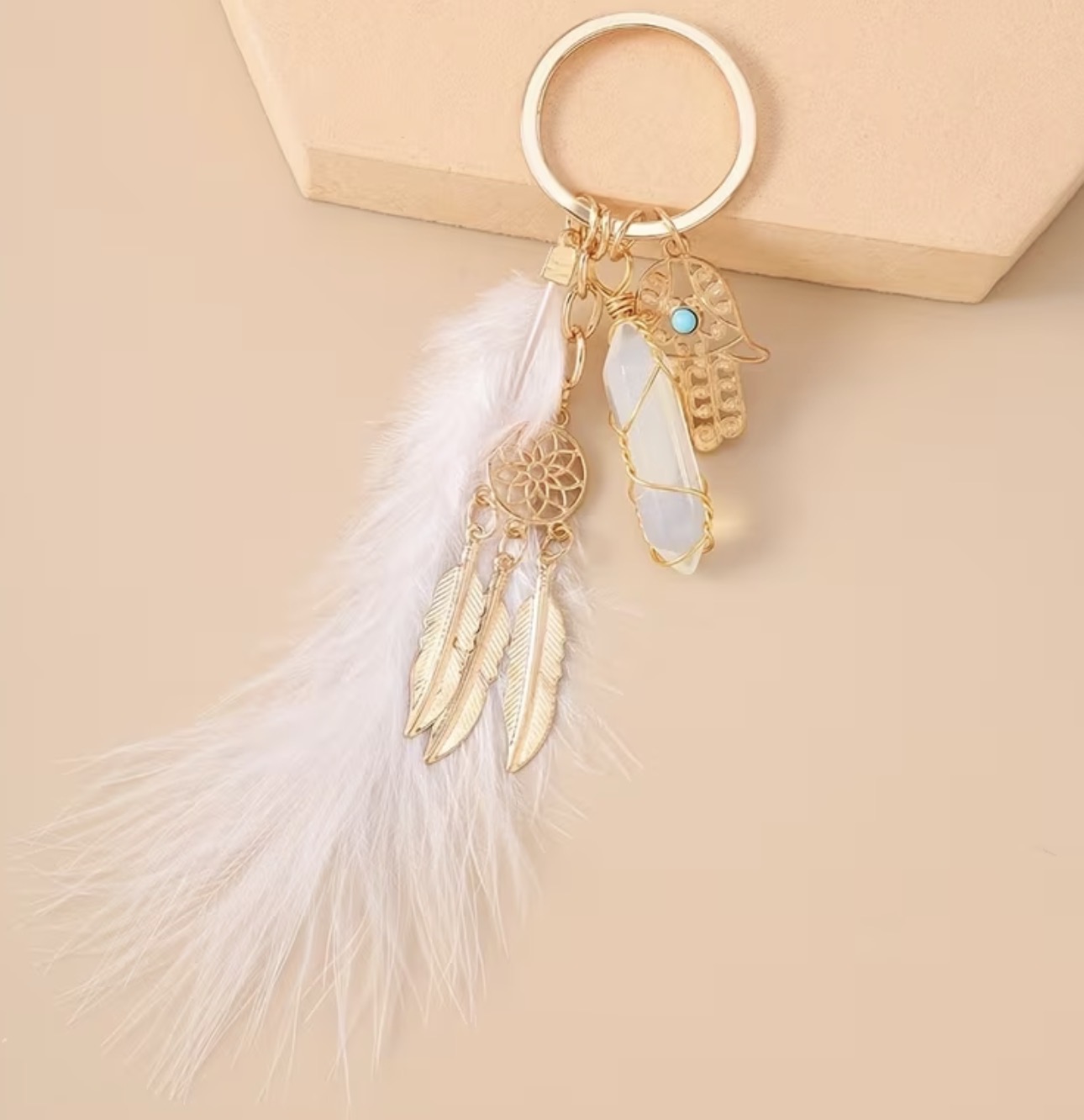 1pc Creative Tassel Palm Hexagonal Pillar Flower Feather-style Keychain Women's Accessory for Daily Wear