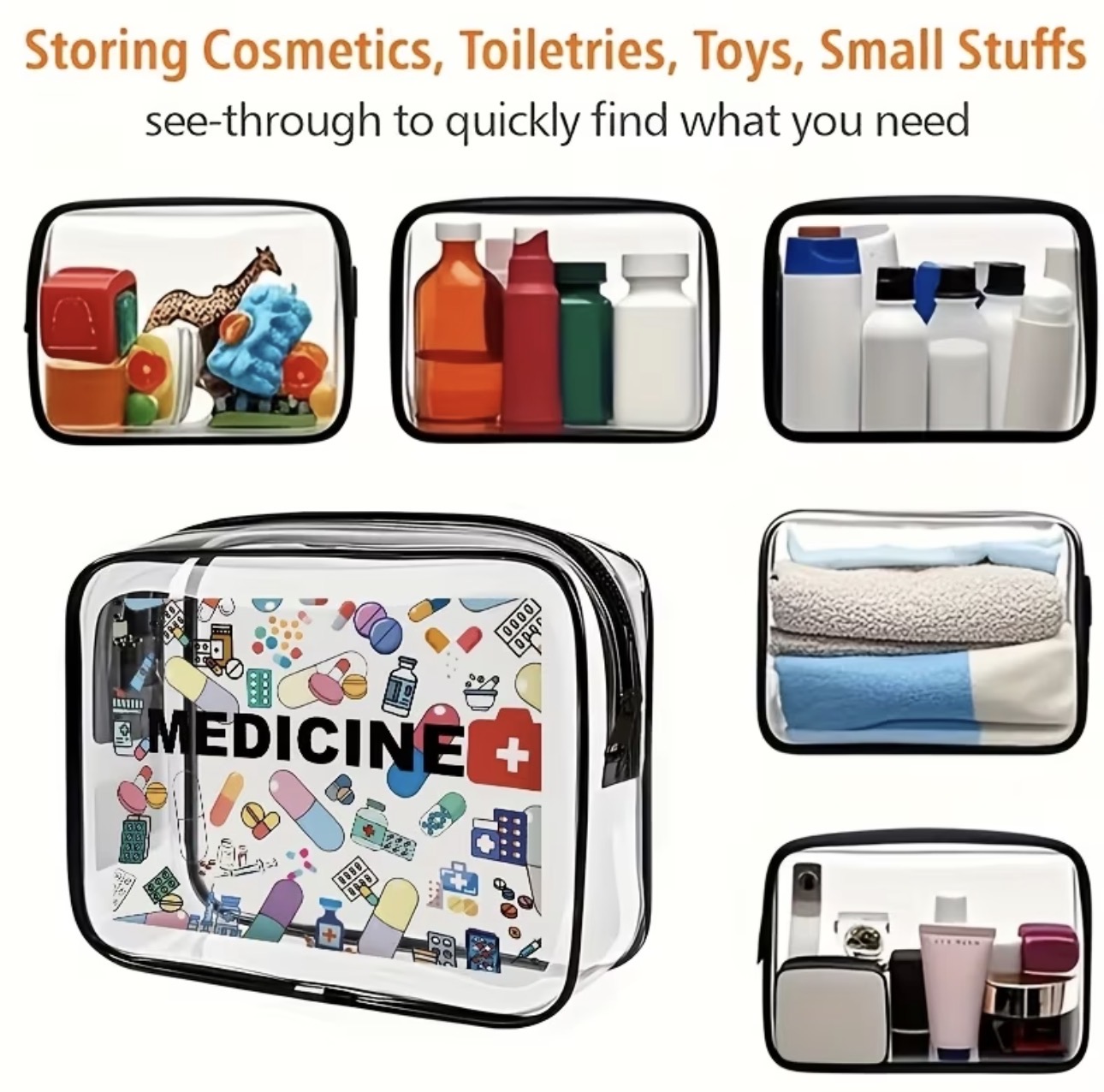 Transparent Casual Tote Bag for Men and Women, Can Be Used as Makeup Bag/Toiletry Bag/Storage Bag, Etc., Convenient to Carry, Toiletry Bag - Travel Airport Luggage Accessory with Zipper Closure and Carry Handle