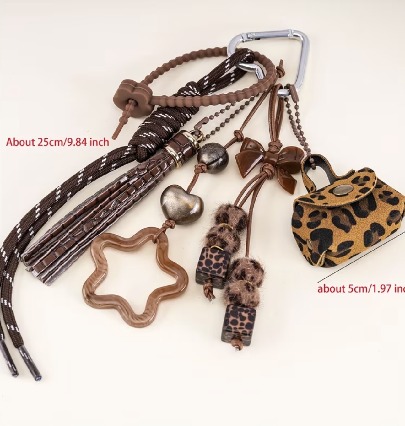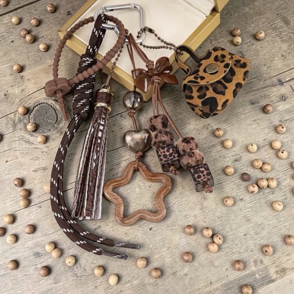 Faux Leather Handbag Coin Purse Keychain Trendy Leopard Print Key Ring Unisex Earphone Storage Bag Love Tassel Handmade Woven Lanyard Bag Pendant Car Key Chain Pendant Fashionable Bag Pendant