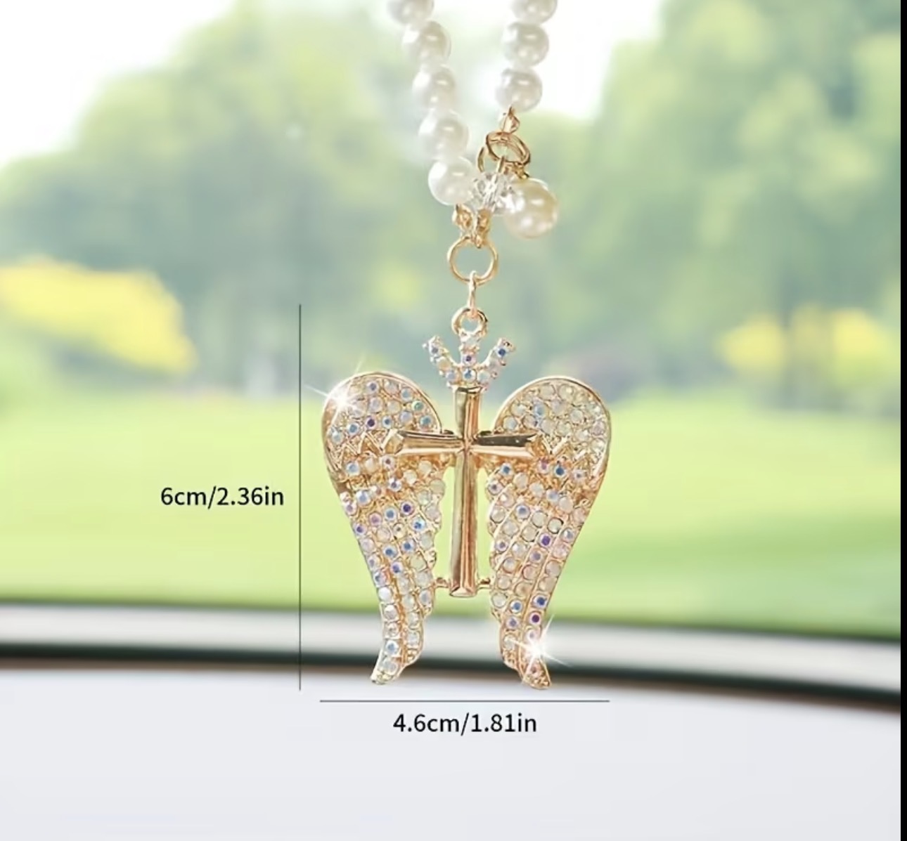 Angel Wings Car Decoration Pendant - Golden Cross with Sparkling Wings, Elegant Rearview Mirror Charm - Christian Religious Car Accessory, Women'S Gift for Birthday, Wedding, Christmas - Durable Metal Construction for Everyday or Special Occasions, Angel Wing Design, Intricate Craftsmanship, Car Mirror Hanging Accessory For Women, Car Pendant, Car Mirror Ornament, Car Decorations, Rearview Mirror Hanger