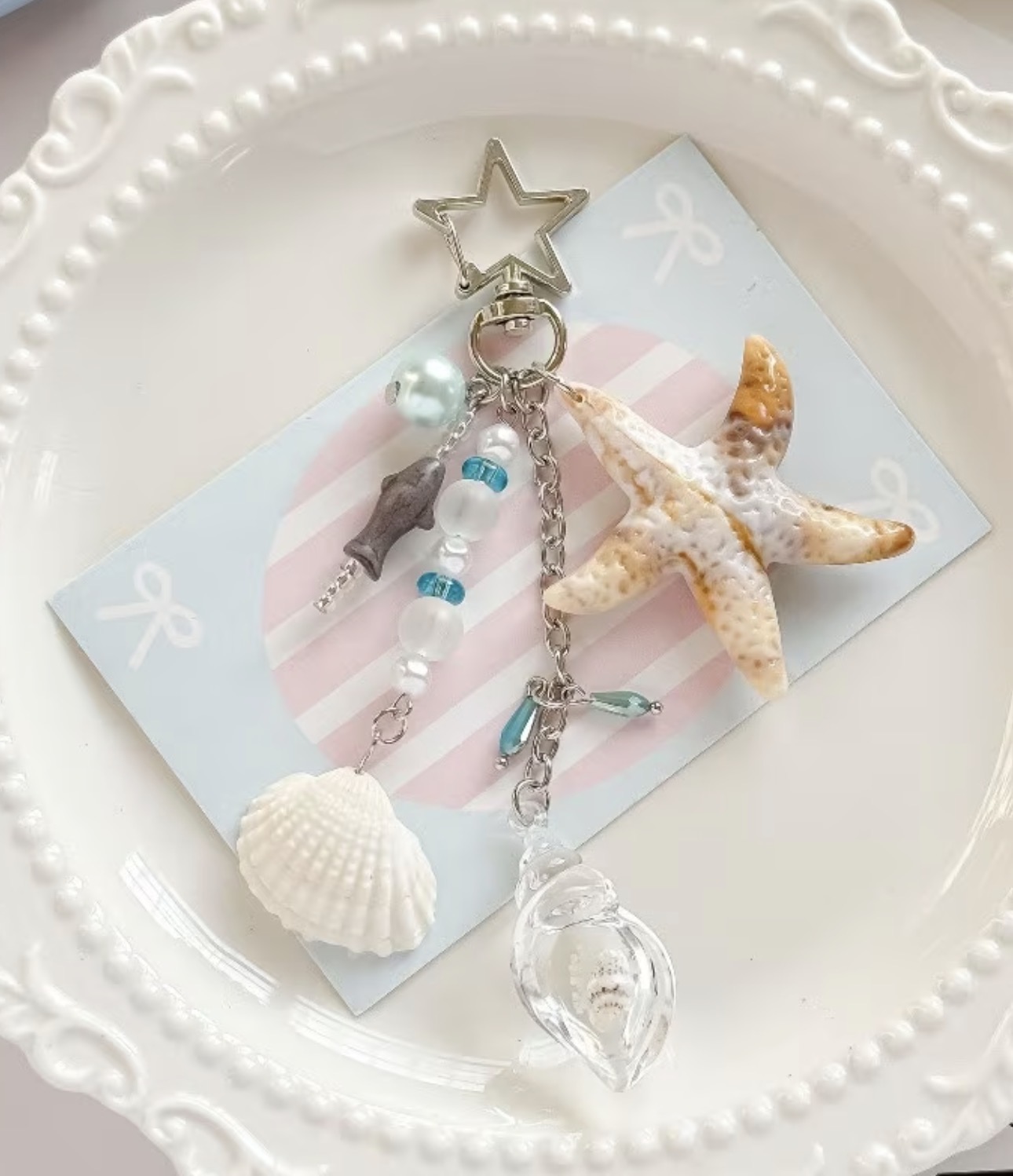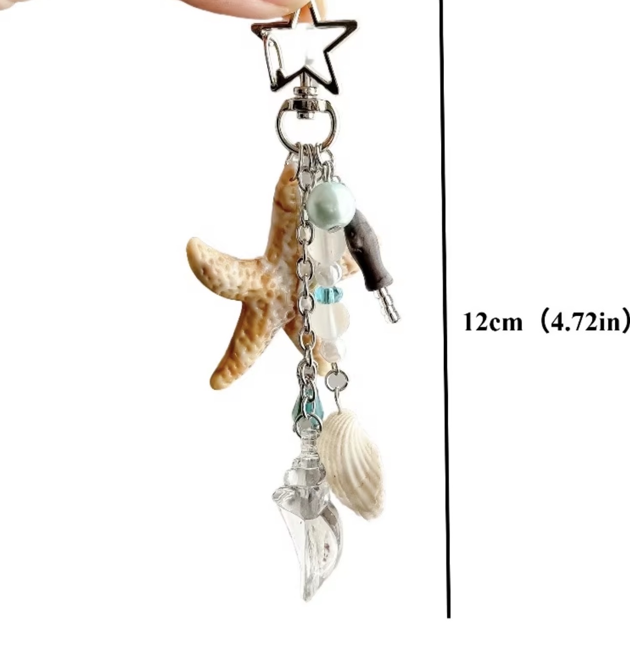 A Marine-Themed Pendant Featuring a Pearl Shell And Starfish, an Instagram-Style Beaded Keychain, a Seashell Bag Charm, And a CCD Camera Accessory, Perfect As a Gift for Friends