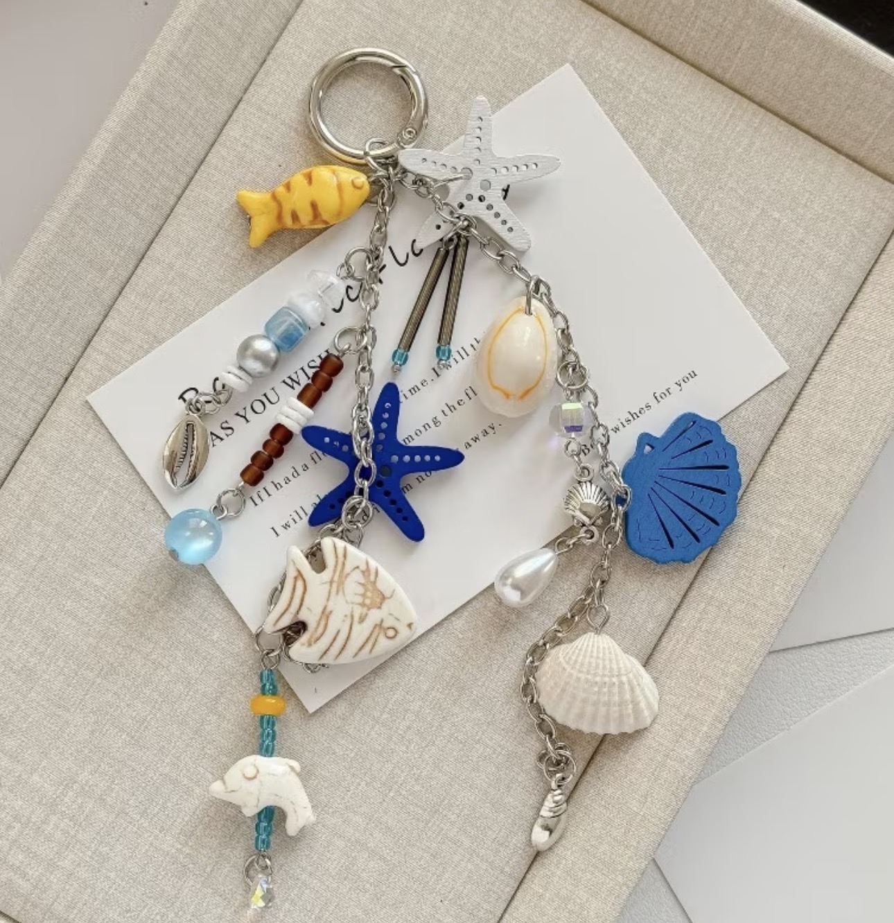 1pc New Starfish Keychain, Ocean Series Pendant, Starfish Key Ring, Bag Charm, Car Hanging Ornament