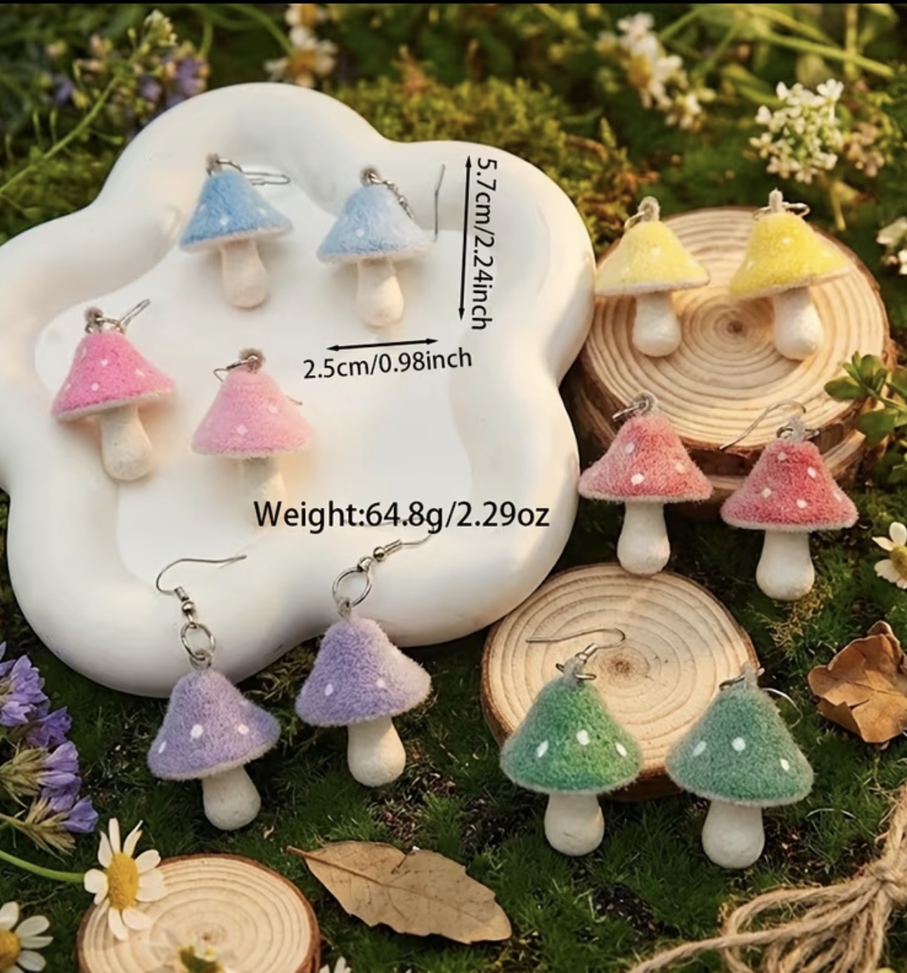 1 Pair of Stylish Women'S Pendant Earrings, Featuring Colorful Polka Dot Faux Mushroom Plant Designs Made of Resin And Flocking. These Cute, Pastoral Cartoon-Style Earrings Are Elegant And Suitable for Everyday Wear, Vacations, Gifts