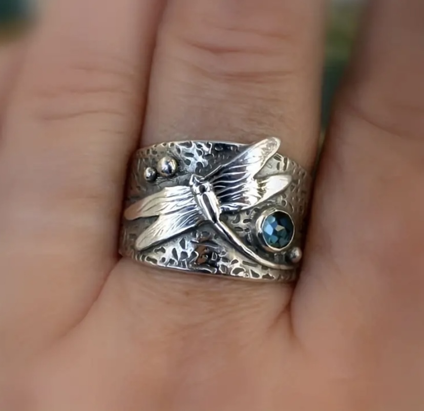 Creative Dragonfly Pattern Ring For Men And Women Retro Style Textured Casual Ring Fashion Jewelry Men's And Women's Casual Accessories
