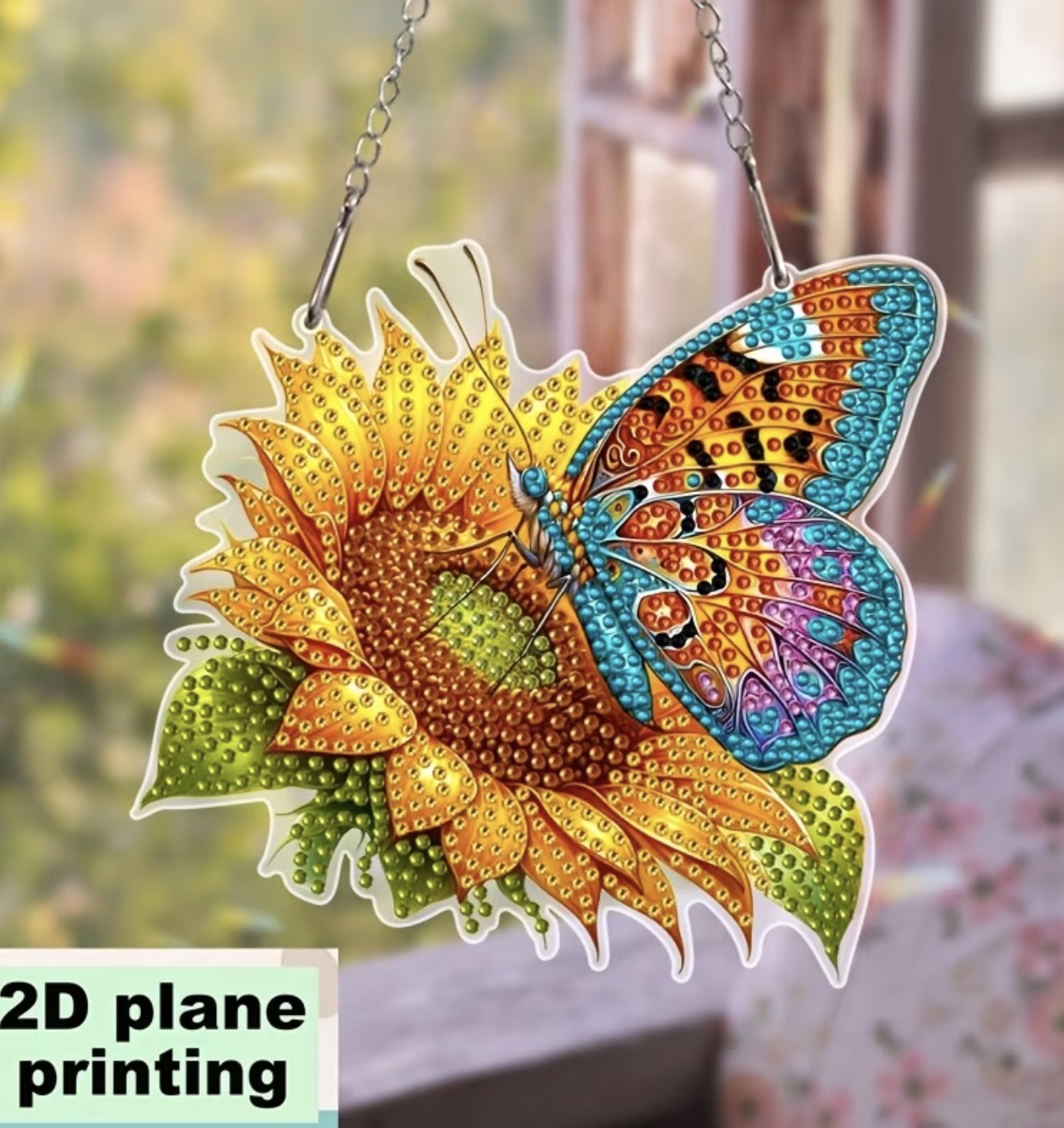 DIY Diamond Painting Kit Suitable for Wall Decor - Sunflower & Butterfly Mosaic Art with Irregular-Shaped Diamonds, Handmade Craft for, Colorful Room Decoration, Perfect Gift for Women, Housewarming, for, Office, Cafe Hanging, 2D Flat