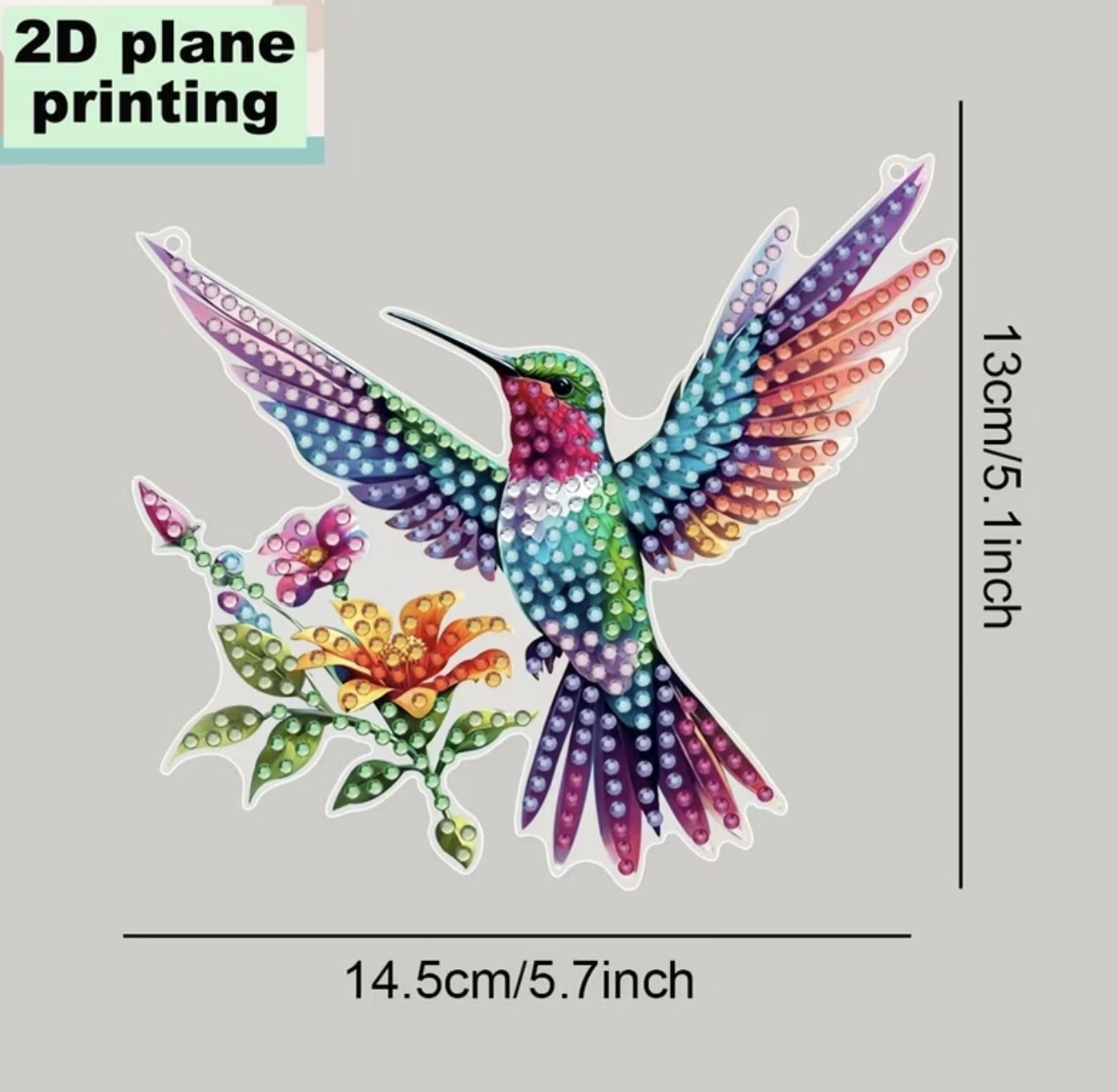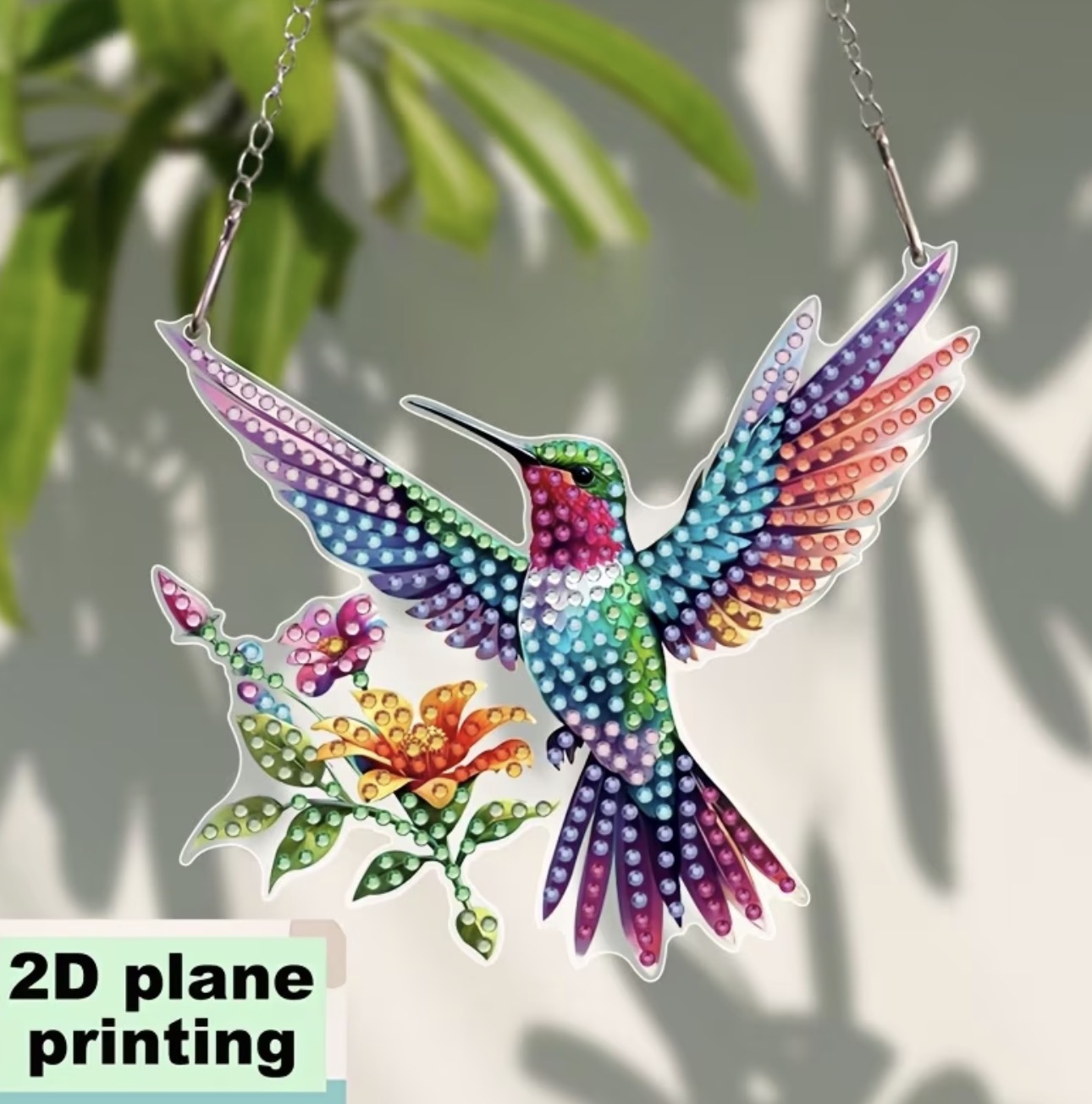 2D Flat Acrylic DIY Diamond Painting Kit, Charming Hummingbird Diamond Art Hanging, Irregular-Shaped Diamond Suncatcher, Suitable for Office, School, Library, Living Room, Bedroom, Garden, Club, Bar, Cafe, Porch, Garage Hanging Decoration