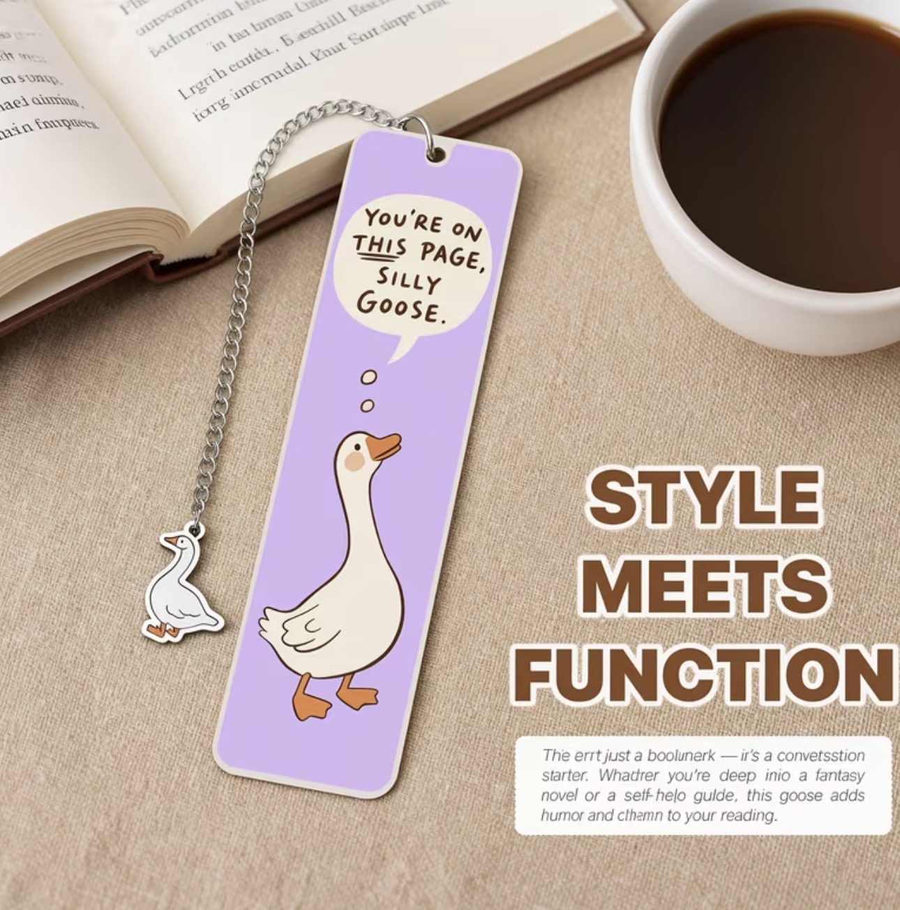 Adorable Metal Bookmarks Featuring Goose Charms, Designed with The Humorous Quote 'You'Re on This Page Silly Goose.' Perfect for Animal Lovers And Book Fans, These Creative Stationery Items Are Double-Sided.