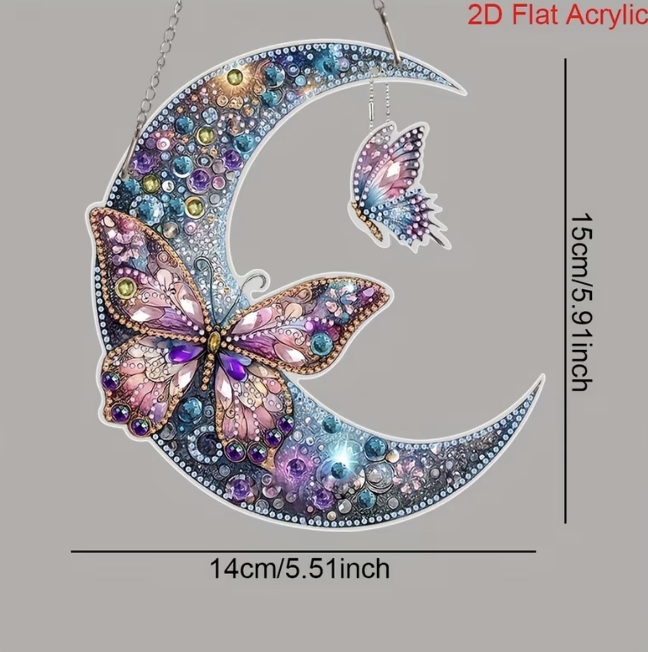 2D Flat Acrylic, 5D DIY Diamond Painting Kit, Moon Butterfly Diamond Mosaic Art Pendant, Irregularly Shaped Crystals, Acrylic Mosaic Crafts Suitable for Beginners, Suitable for Home Wall and Desktop Decoration Art, Creative Gifts for Friends, Holiday Gifts, 2D Flat