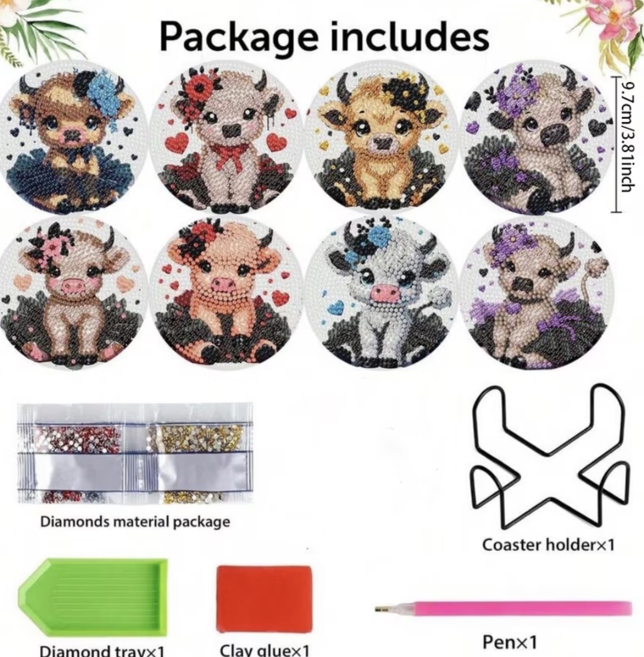 8pcs/set of Diamond Painted Coasters Set with Animal Patterns (with Holder) - DIY Diamond Art Craft Kit for Home Decoration Beginners, Diamond Craft Supplies, Artificial Diamond Art Craft Supplies Gifts
