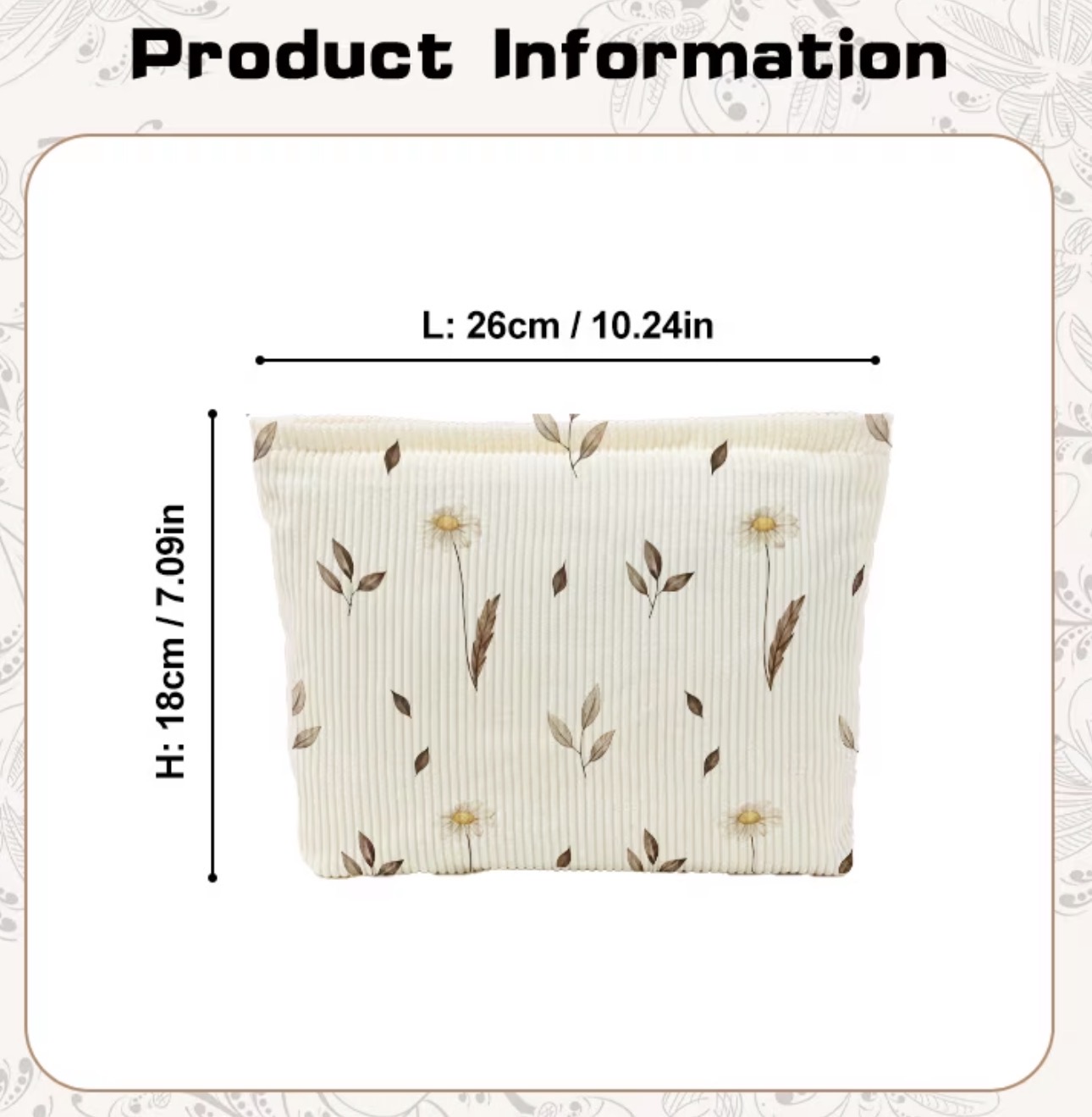 Large Capacity Makeup Bag - a Soft Aesthetic Storage Pouch with a Zipper Closure Featuring Falling Autumn Leaves And Blooming Daisies, a Cute Gift for Travel, Daily Use, And Cosmetic Storage - Made of Durable Thick Corduroy Fabric