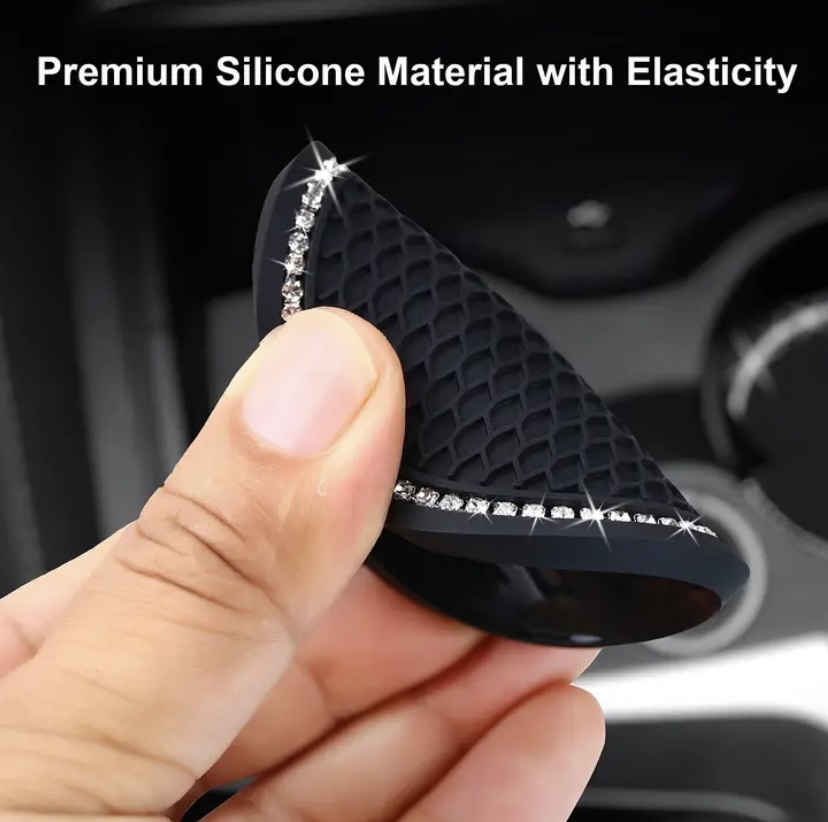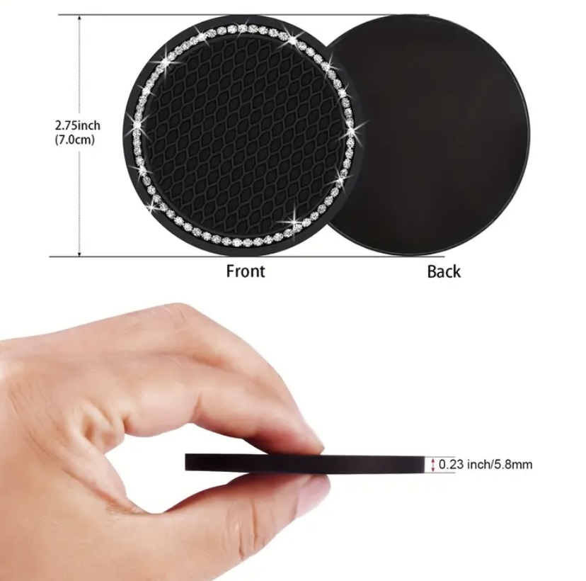 Add a touch of glamour to your car with these Crystal Rhinestone Black Silicone Car Coasters. Made with durable silicone material and adorned with sparkling rhinestones, these coasters not only protect your car cup holders but also add a stylish and luxurious look to your vehicle. Get yours now and elevate your driving experience!