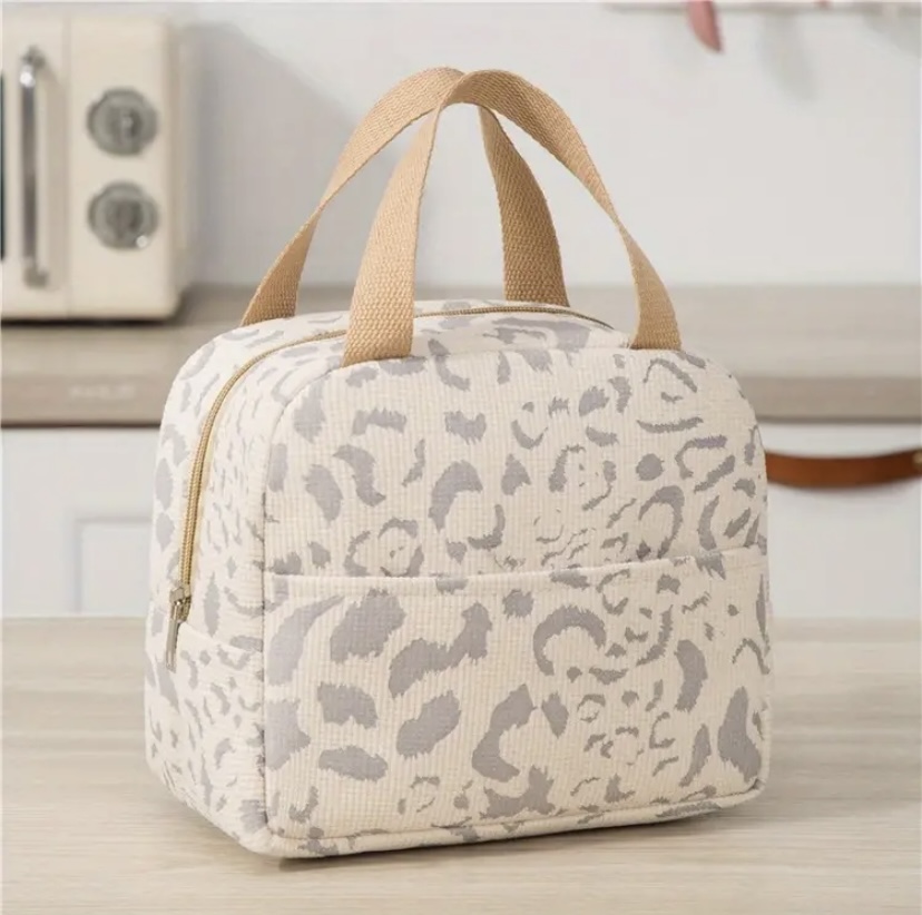 Chic Ink Pattern Insulated Lunch Bag - Durable Polyester, Hand-Washable, Perfect For Bento Boxes & Outdoor Picnics