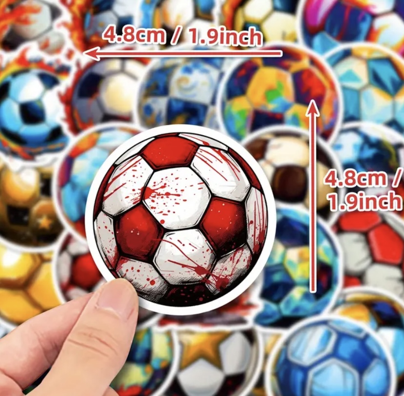 50pcs Soccer ⚽️ Stickers, Soccer Sports Cartoons, Soccer Graffiti Decorations, Luggage, Laptop, Guitar, Skateboard, Phone, Motorcycle, Car, Water Bottle, Christmas, Halloween Party Gift Stickers
