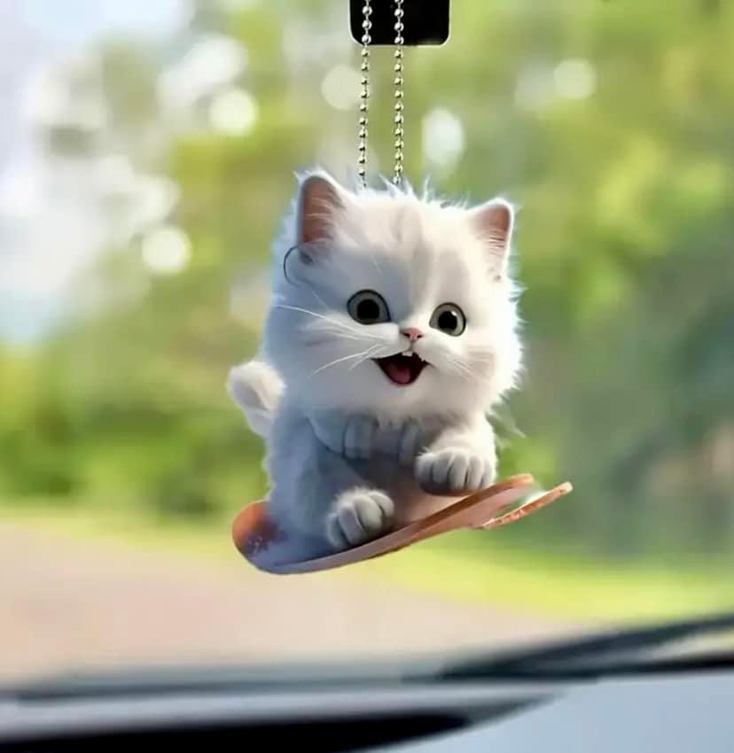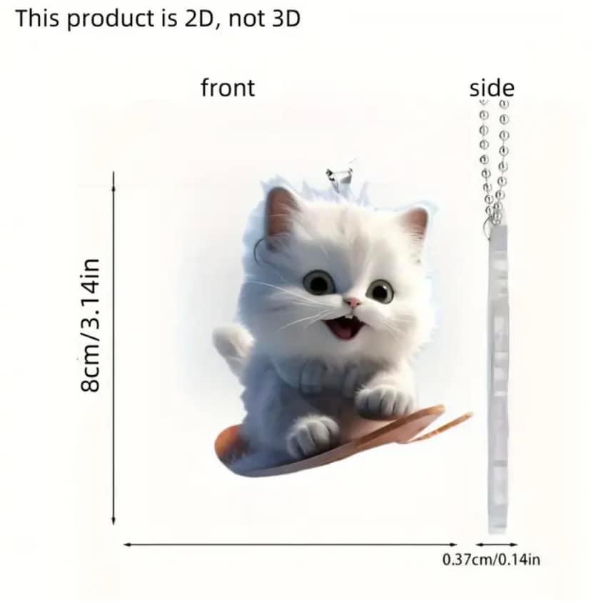 2D Acrylic Car Rearview Mirror Pendant, Mobile Phone Hanging Ornament, Bag Decoration Pendant, Cat Cat Keychain Pendant, Cat Skateboard Hanging Ornament