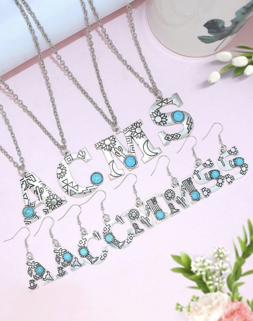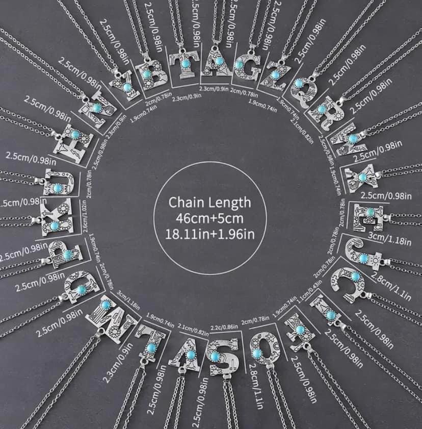 1pc Exquisite Bohemian Letter Pendant Necklace - Turquoise Inlay, Western Style Charms, Vintage Ethnic Jewelry with Chain - Unique Gift for Her, Boho Chic Accessory, Statement Piece