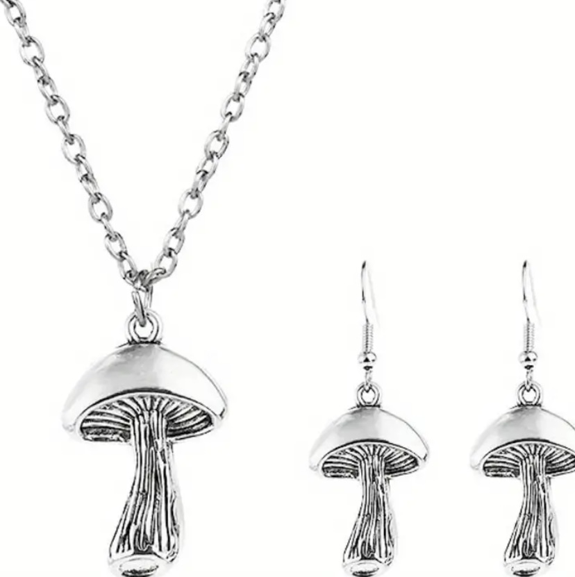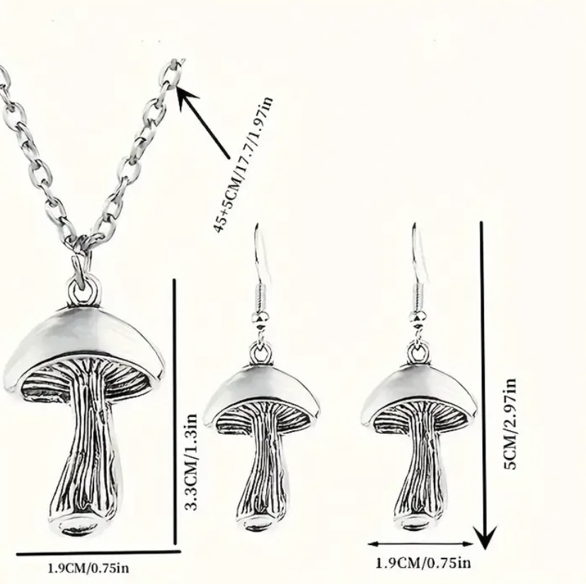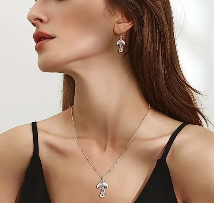 3pcs Earrings Plus Necklace Boho Style Jewelry Set Cute Mushroom Pendant Silver Plated Match Daly Outfits Party Accessories