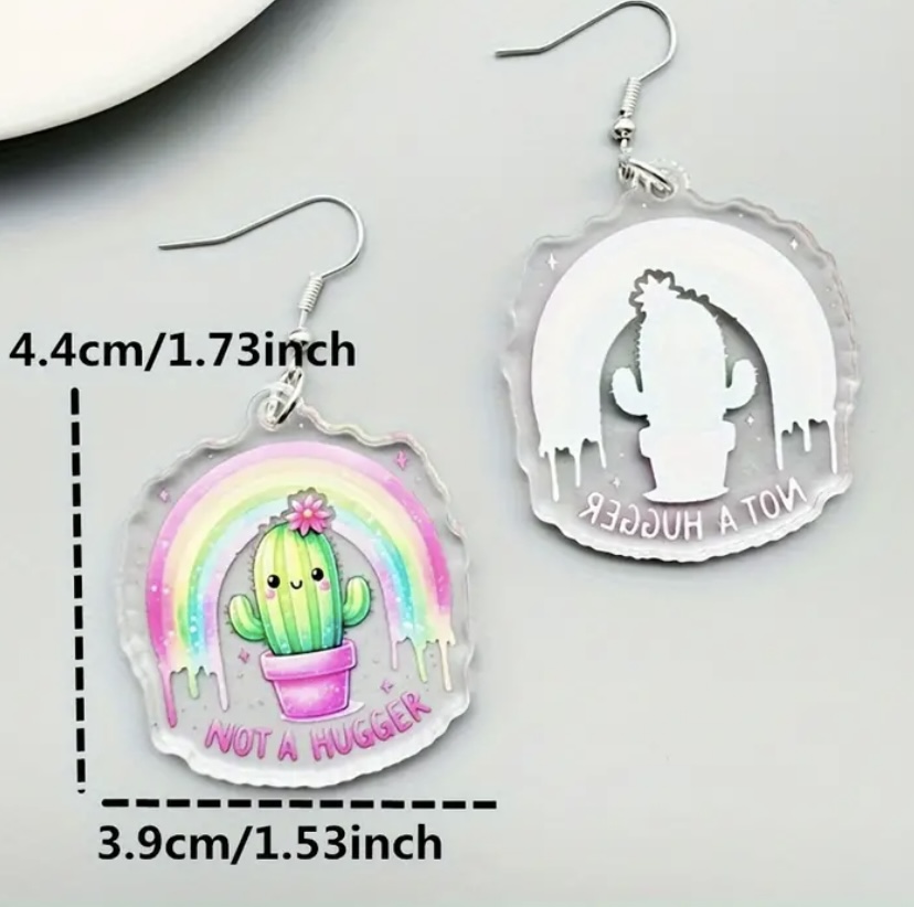 Vibrant Rainbow Cactus Drops - Drop & Dangle Earrings for Women with Stainless Steel Hooks, No Plating, Unique Acrylic Design, Transparent Finish, and Durable Construction - Ideal Jewelry Gift for Ages 15+