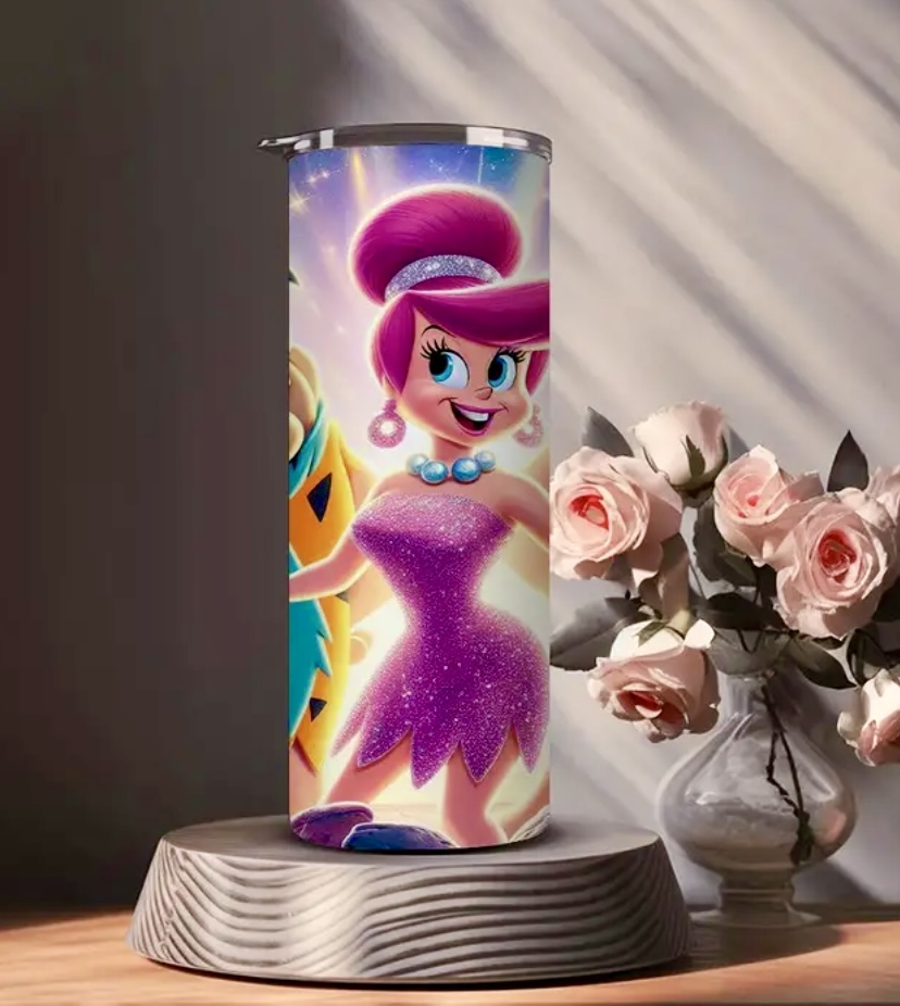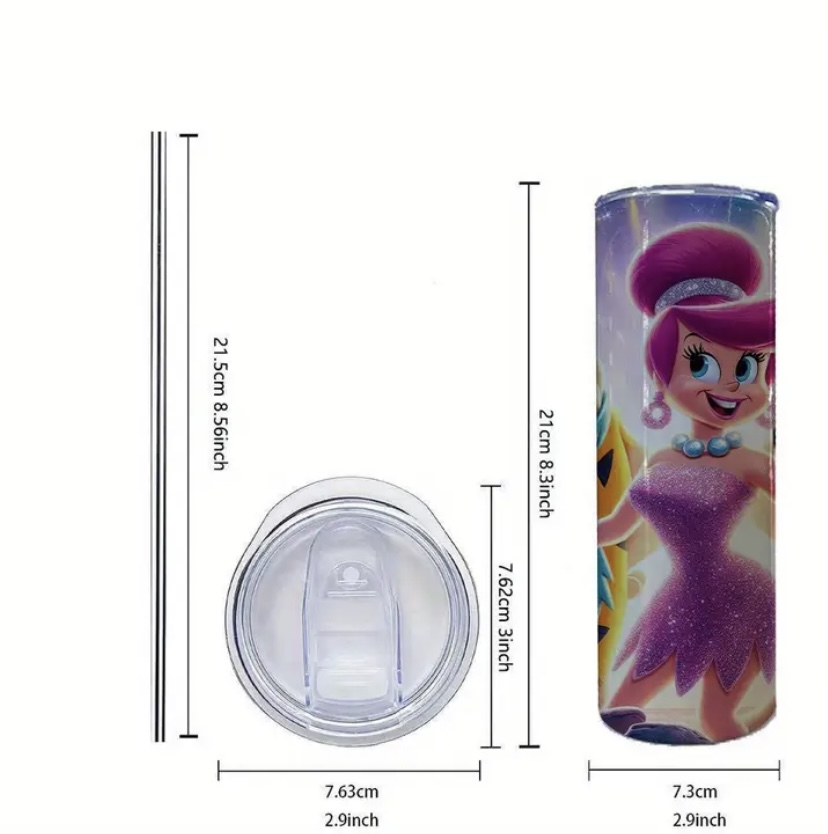 20oz Flintstones Stainless Steel Tumbler - Perfect for any occasion , Cartoon Printed stainless steel for Outdoor Travel & Autumn/Winter Drink-ware