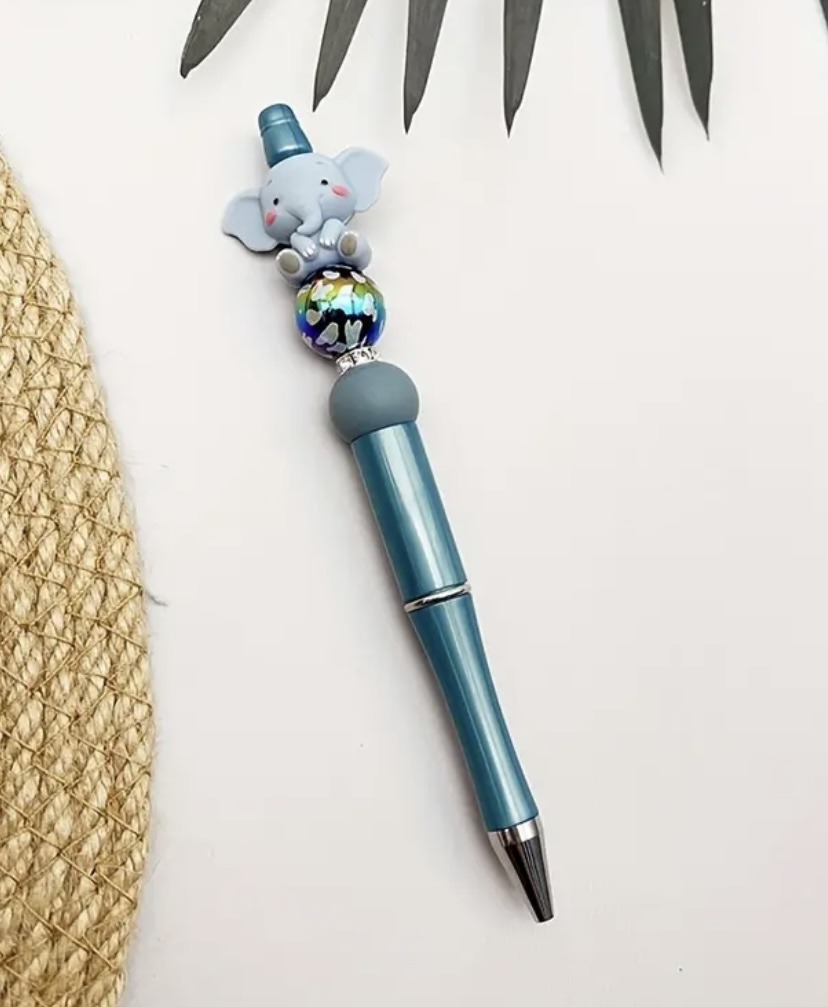 Charming Elephant π -Themed Silicone Beaded Pen - Cute Cartoon Animal Charm, Perfect Back-to-School Gift for Friends, Fashionable Silicone Beaded Pen. Black Ink.