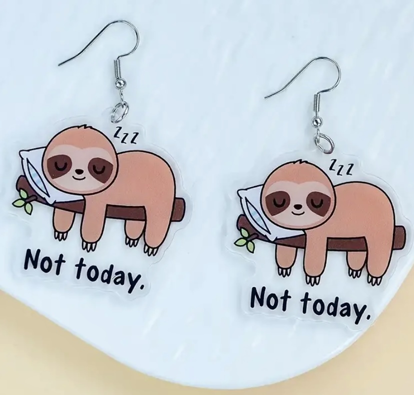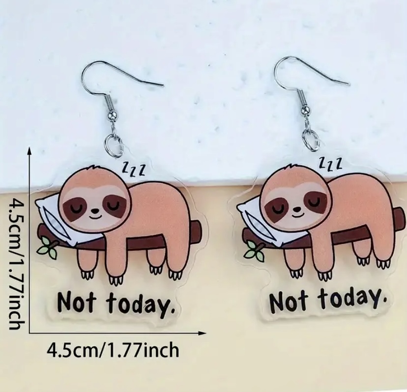 Cute Cartoon Sloth Acrylic Pendant Earrings - Perfect for Birthday, Anniversary, Graduation, And Christmas Gifts - Women'S Fashion Dangle Earrings - Daily Wear And Party Accessory - Copper Ear Hooks - No Feather - No Enamel - No Plating