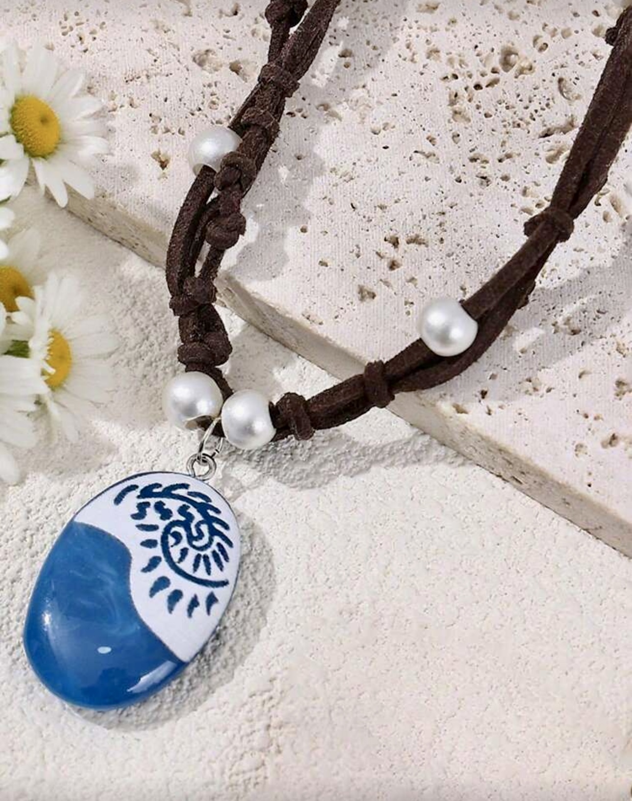 Chic Geometric Hollow-Out Knot Collar Necklace - Beaded, Perfect for Everyday & Party Wear