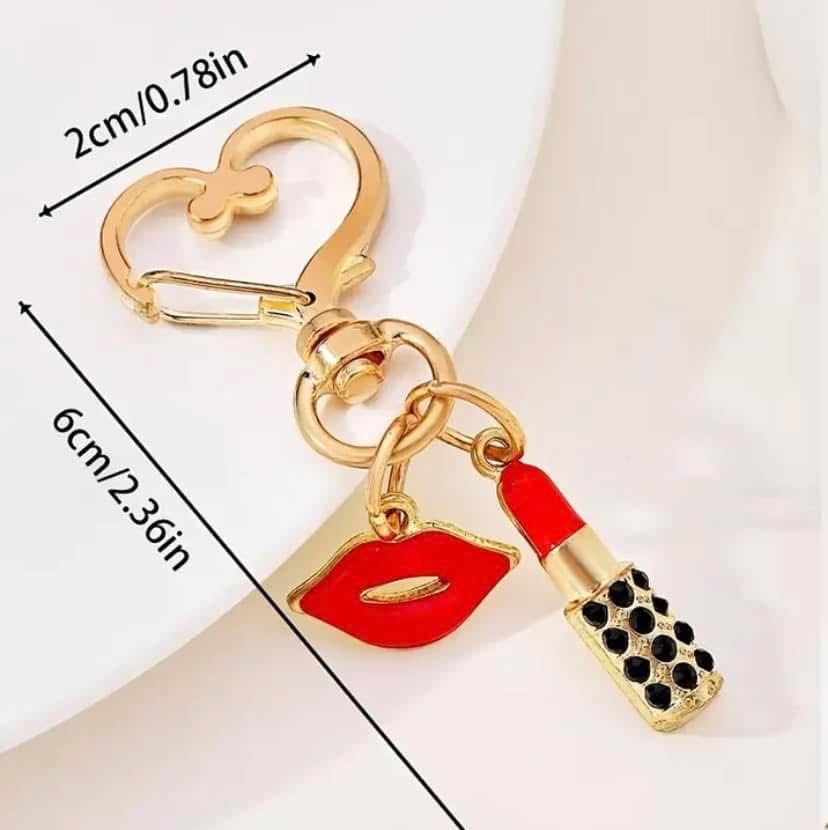 1pc Alloy Lipstick & Heart Keychain Charm, Fashionable Red Lip & Kiss Design Keyring, for Handbag Decoration, Ideal Gift Accessory