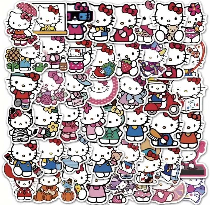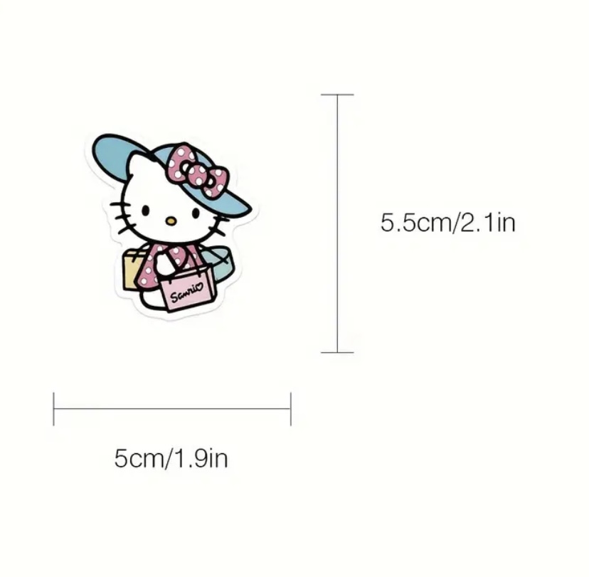 50pcs Sanrio Hello Kitty Stickers - Vibrant Matte Cartoon Decals, Self-Adhesive PVC, Perfect for Laptops, Diaries, Phone Cases & Water Bottles | Diverse Designs with Flowers, Fruits & More, Cute Stickers, Sanrio