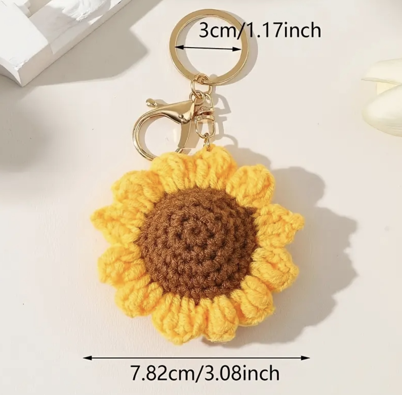 1pc Handmade Crochet Sunflower Keychain, Alloy & Yarn Floral Charm with Lobster Clasp, Decorative Plant Theme Ladies Novelty Keyring for Birthday Festival, Crochet Flowers