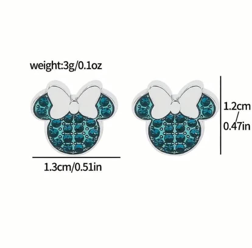 1 Pair Disney Cartoon Luxury Water Diamond Earrings Exquisite Charm Women'S Jewelry Gifts Suitable for Daily Accessories Party Gifts - Color: Green, Material: Zinc Alloy, Brand Name: Disney, Material: Rhinestones, Material: Alloy