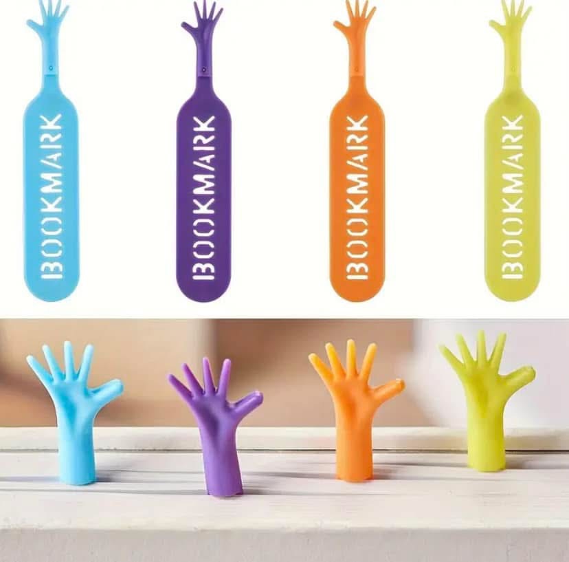 4-Pack Colorful 3D Cartoon Hand Bookmark, Funny Novelty Page Markers, Durable PP Material, Waterproof and Reusable, School Stationery Supplies