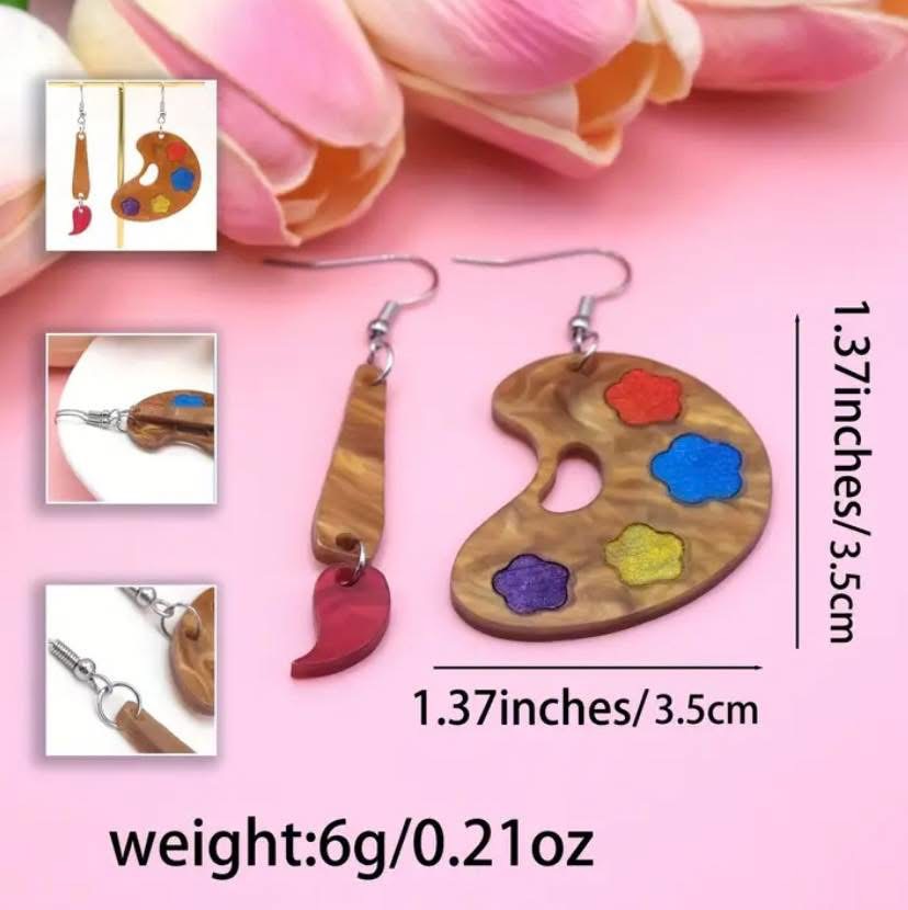 Acrylic Paint Palette Earrings - Perfect Teacher's Day Gift - 1.37 inches/3.5cm - 6g/0.21oz