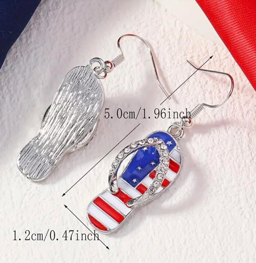 1 Pair Flip Flop Drop Earrings With Rhinestone Flag Pattern, Red White & Blue Enamel, 4th Of July Independence Day Celebration, National Style, Western Flair Jewelry