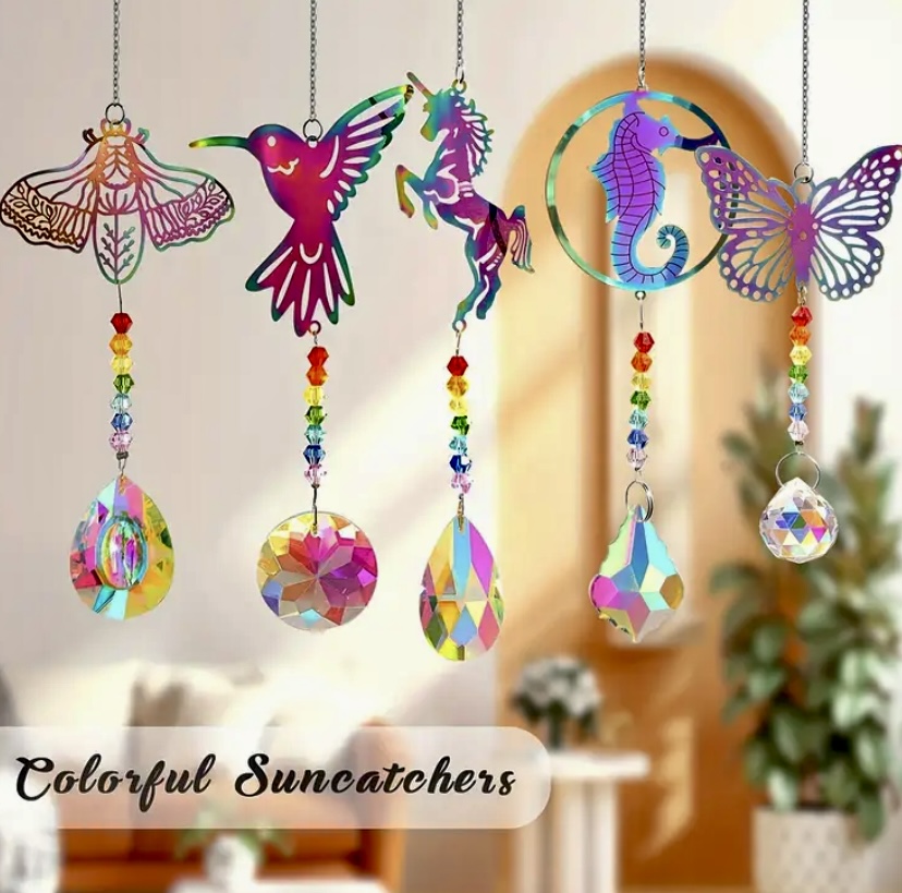 [Vibrant Crystal Sun Catcher] 1 Piece Vibrant Crystal Sun Catcher - Glass Prism Pendant with Metallic Animal Designs for Indoor Decoration