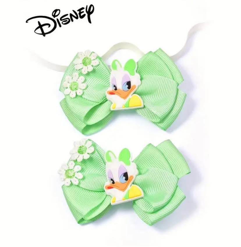 1 Pair Disney Ribbon Flower Piece Double-Layer Bow Hairpins, Suitable for Daily Use, Holiday Gifts, Back-To-School Season, Travel And Party Hair Accessories.