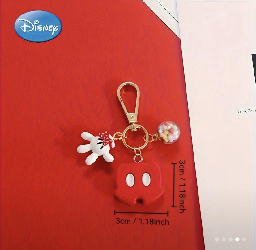 1pc Disney Mickey & Minnie Mouse Keychain - Cute Cartoon Design with Pom-Pom Charm, Golden Key Ring for Women and Girls, Perfect for Bags, Cars, and Couple Accessories, Car Keychain | Playful Accessory | Colorful Charm, Disney Bag Accessories