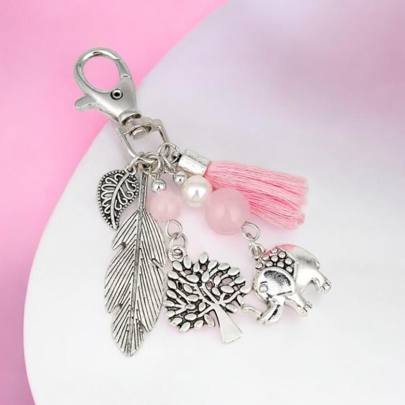1pc Elephant ๐ & Tree Charm Keychain ~ Pink