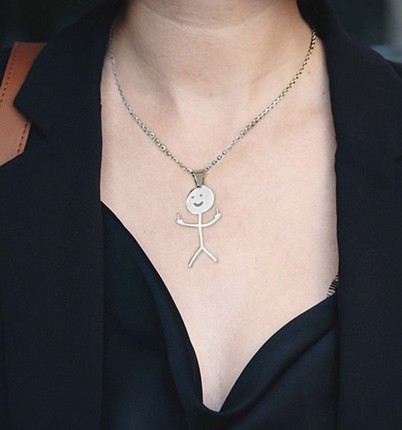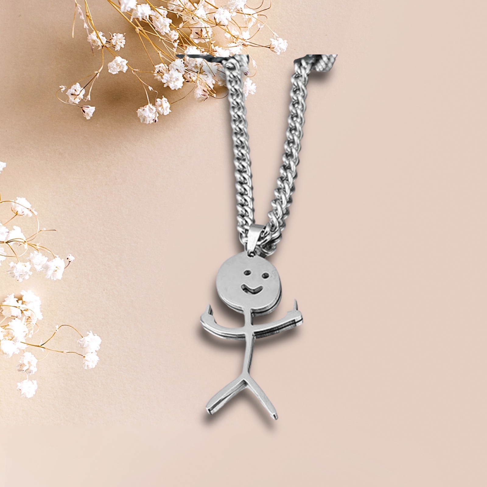 1pc Fashionable Stainless Steel Abstract Figure Pendant Necklace For Couple For Daily Decoration Silver