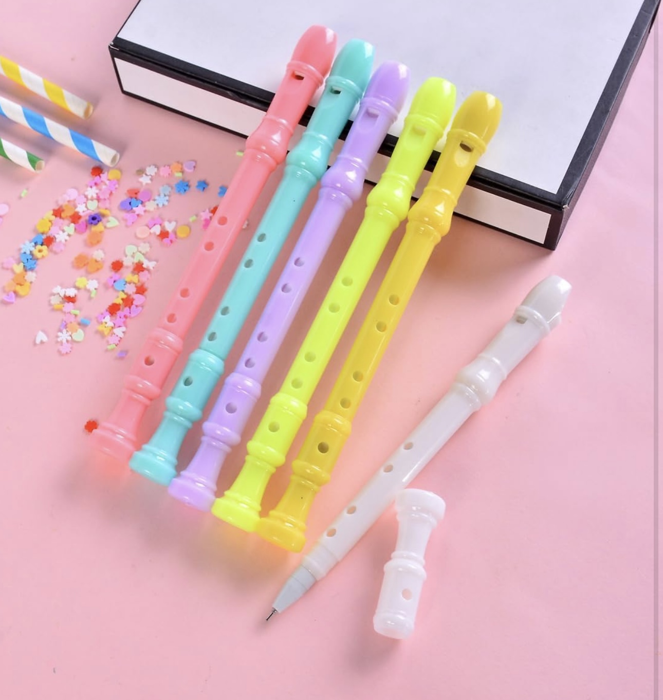 1pc Flute Shaped Rollerball Pens Novelty Flute Gel Ink Pen Creative Music Writing Pens for School Office Stationery Writing Supplies - 0.38mm Black