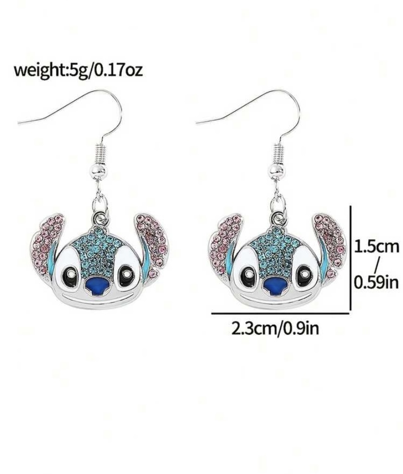 2 Pieces, A Pair Of Authorized Disney "The " Crystal Earrings, Stitch Creative Earrings, Fashionable Anime Accessory Gifts Suitable For Girl