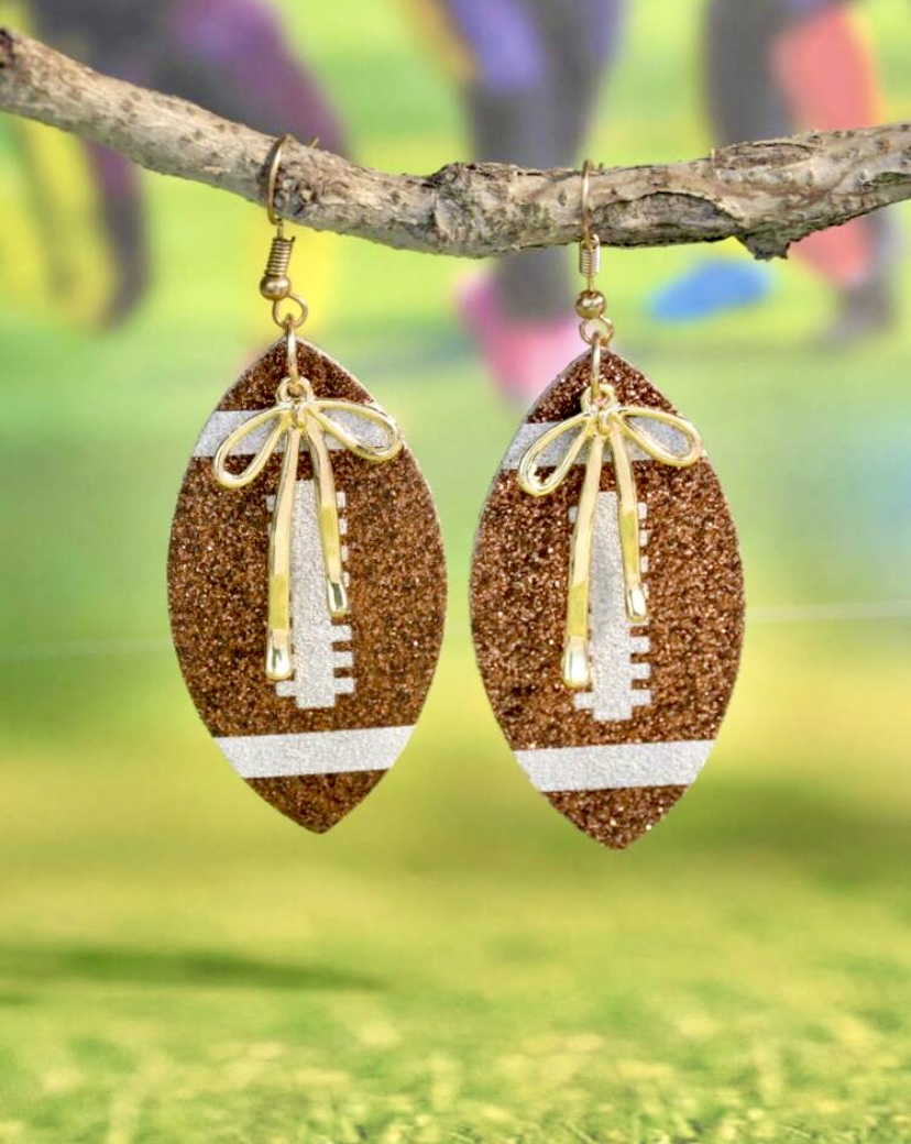 1 Pair Sports-Inspired Glitter PU Football Bow Earrings, Game Day Jewelry