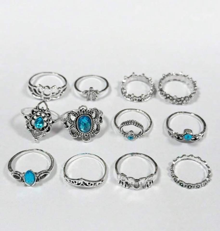 13pcs Vintage Ring Set ~ Blue
